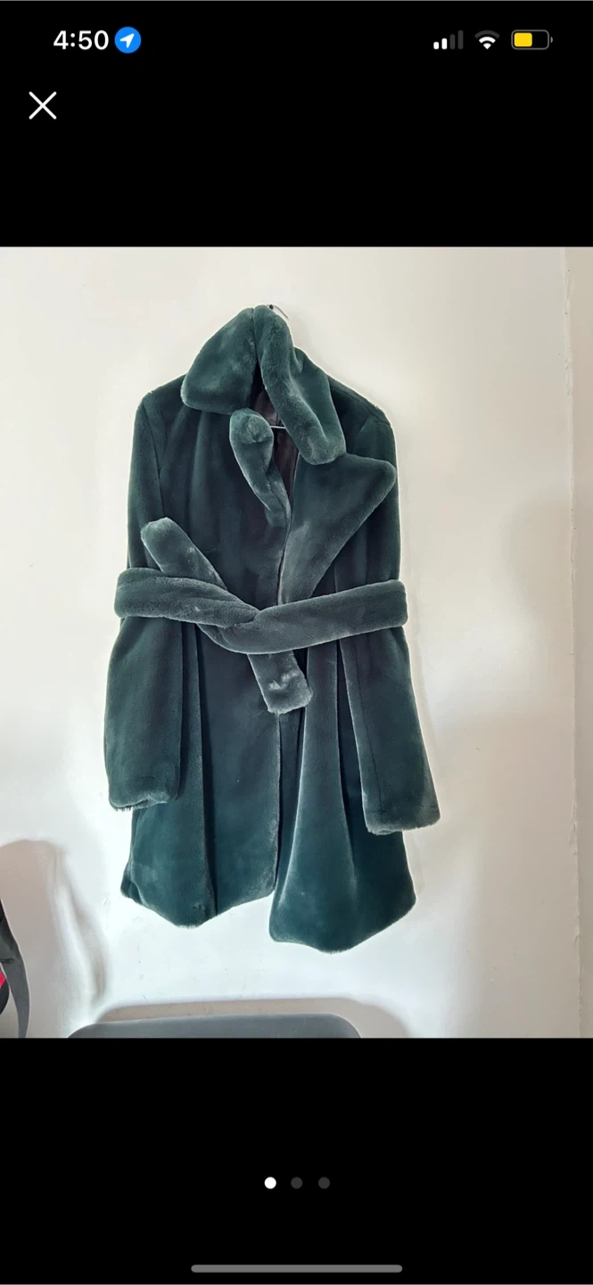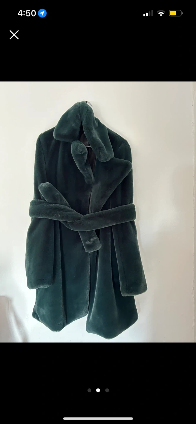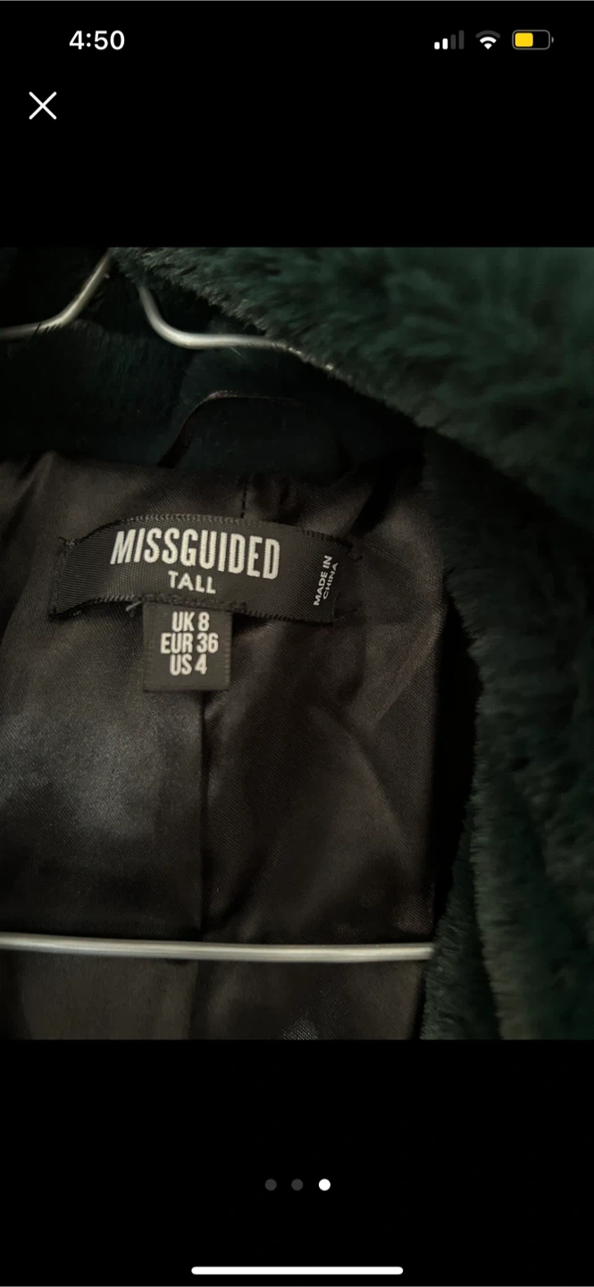 Selling a Missguided Tall faux fur coat in a beautiful green colour! It's a size US 4. This coat is super stylish and perfect for staying warm during the colder months. It features a tie waist to cinch in the silhouette. Perfect for dressing up or down! My partner got this as a gift from work but she did not like the colour hence selling it away.