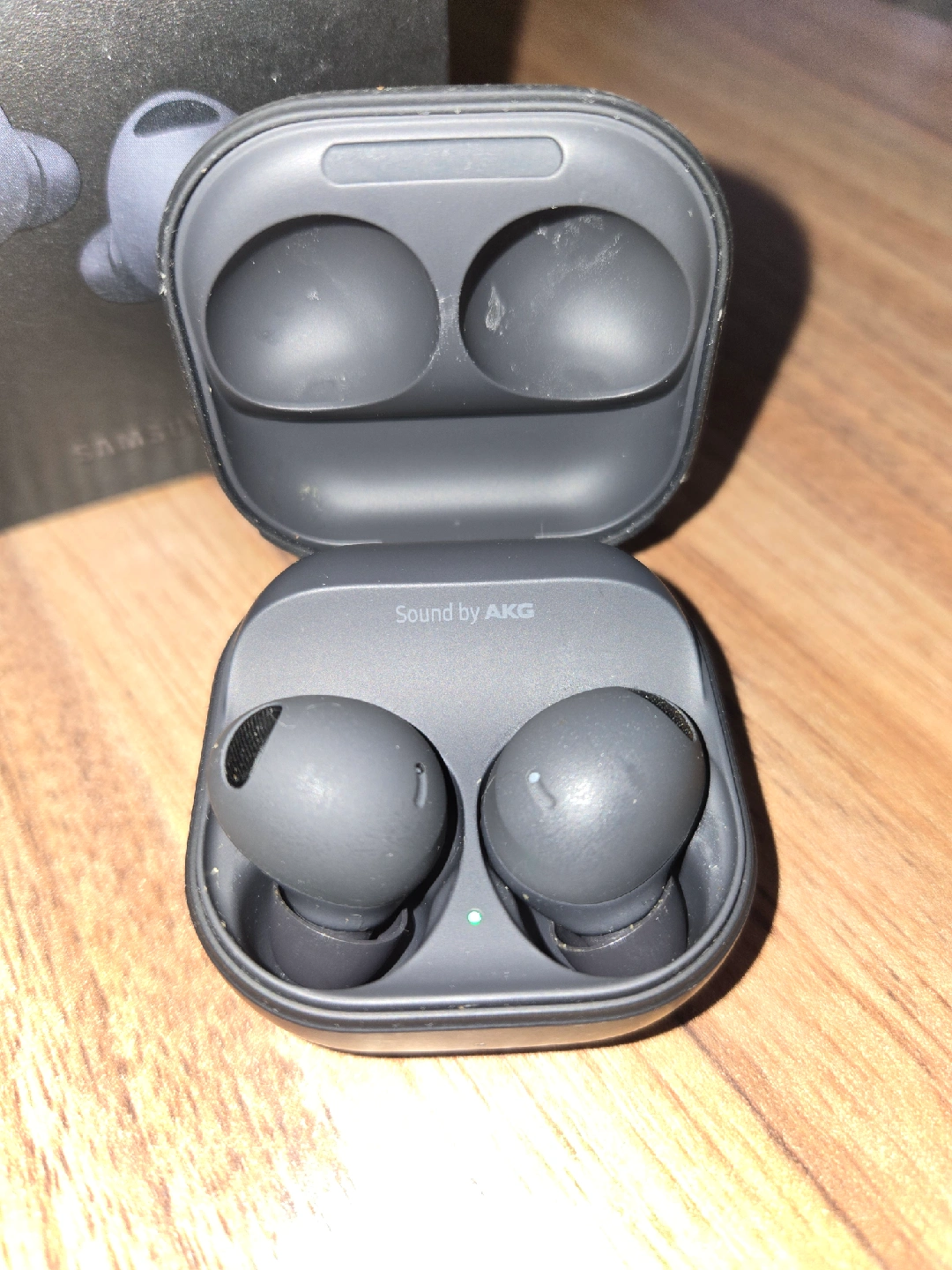 Selling a pair of Samsung Galaxy Buds2 Pro in graphite. They are in great condition and come with the original box. These earbuds are lightweight and portable, perfect for on-the-go listening!
