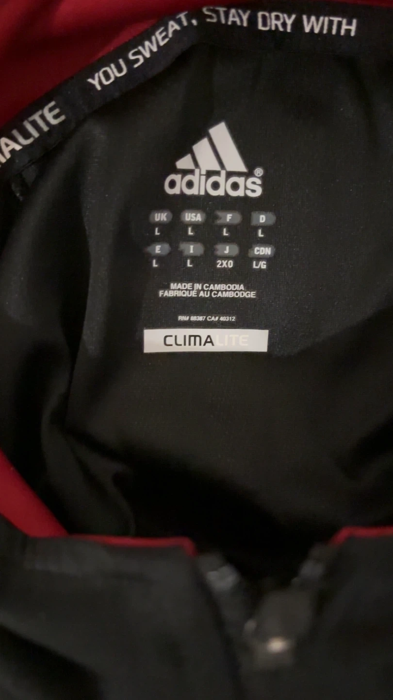 Selling an Adidas ClimaLite pullover in size L! It's black with red accents and features the classic Adidas three-stripe design on the back. Perfect for staying comfortable during workouts or casual wear. It's in great condition and ready for a new home. Brand new