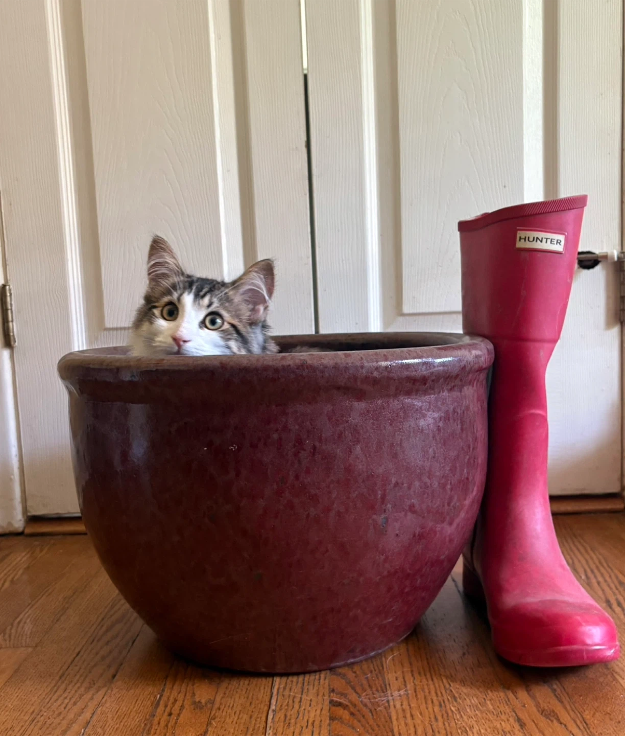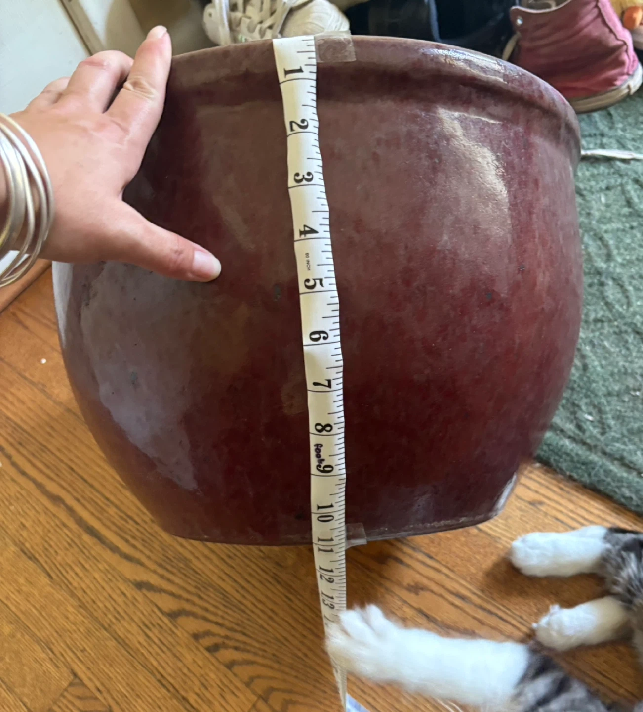 76Selling pair of large ceramic planter in a lovely brown colour! It measures approximately 13 inches in diameter and 13 inches in height, perfect for your plants! ( Kitten NOT INCLUDED)