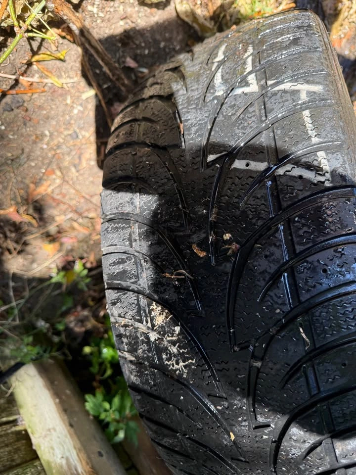 • Condition: Rims are in good overall shape. Minor scratches and scrape marks on the front, and some inner rim weights are rusted and may need attention. Tires are in mixed condition.