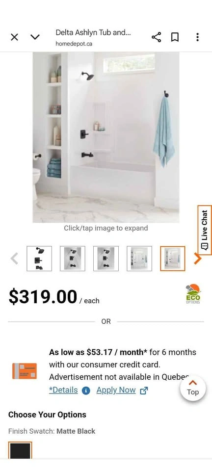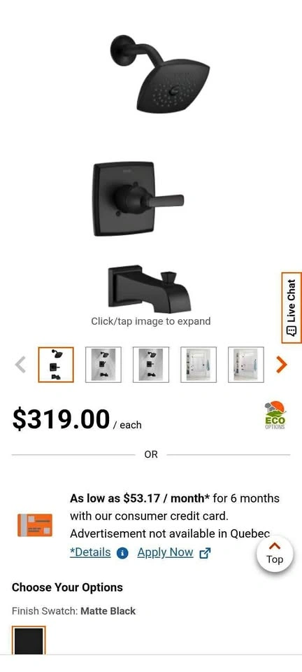 $220 off Delta Ashlyn Tub and Shower Trim Matte Black