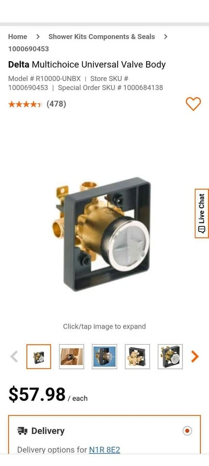 1 PC Delta MultiChoice Universal Tub & Shower Valve Body.