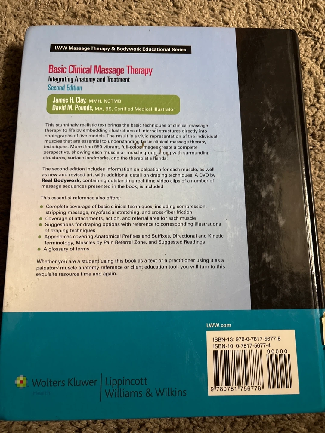 15Selling a copy of Basic Clinical Massage Therapy: Integrating Anatomy and Treatment, Second Edition. This book is part of the LWW Massage Therapy & Bodywork Educational Series.