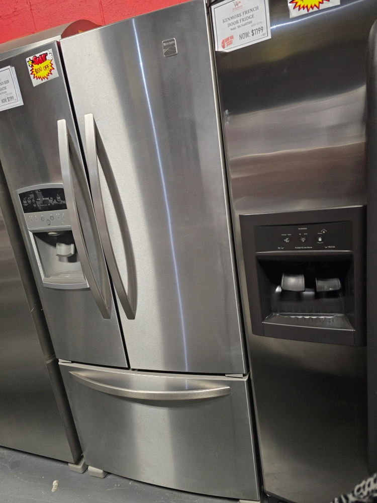 Selling a Kenmore French door refrigerator in stainless steel. It's in great condition and ready to keep your food fresh! Features include a water and ice dispenser. A great addition to any kitchen