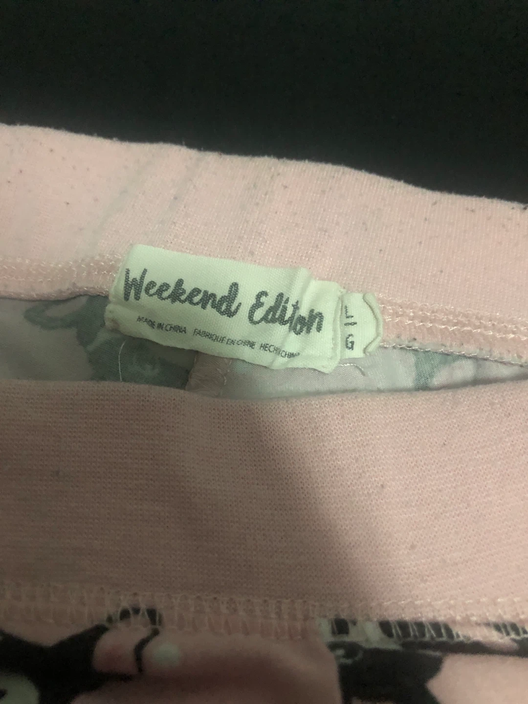 209Cute and comfy Weekend Edition pajama pants featuring an all-over dog print! These are a size large and are in great condition. Perfect for lounging around the house or a cozy night's sleep
