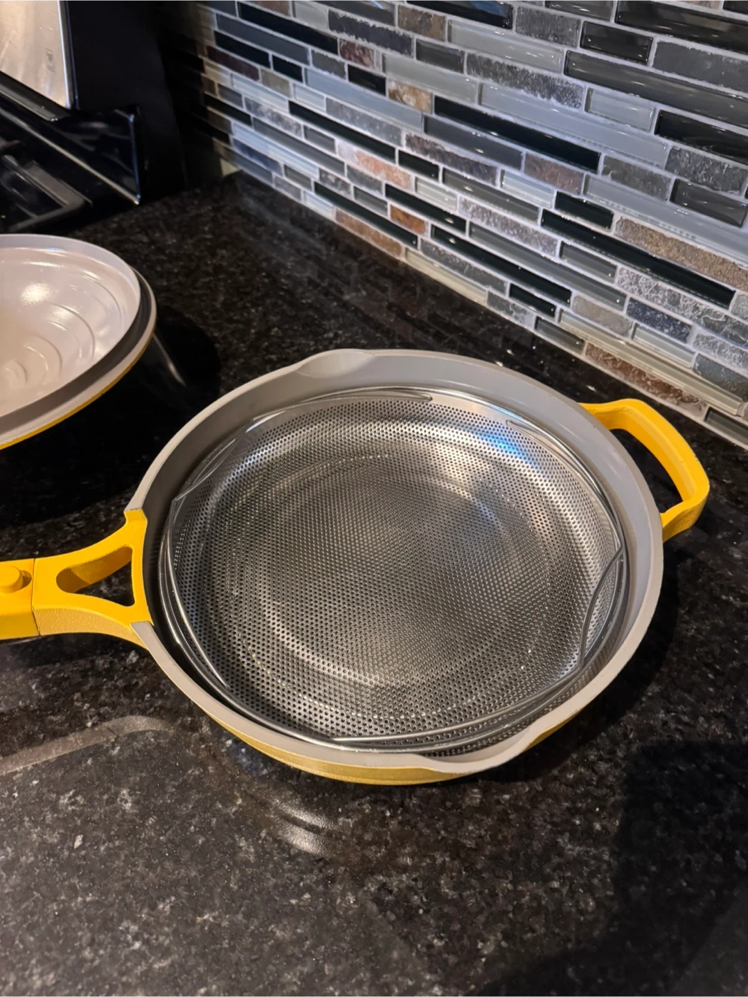 Selling a used Our Place Always Pan in a vibrant yellow colour! It comes with the lid and steamer basket. This pan is designed to replace multiple traditional cookware items, making it super versatile and a space saver in the kitchen. It's lightweight and easy to clean, perfect for everyday cooking. Pickup near Queen E & Coxwell.