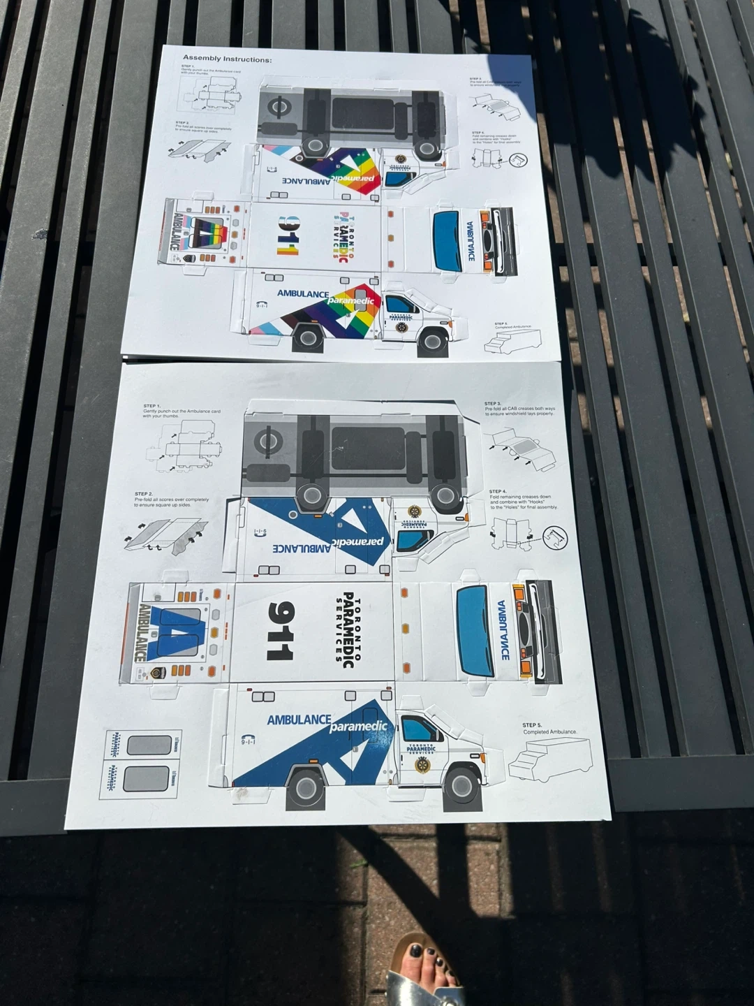 Here are some papercraft models of paramedic service ambulances! They come with assembly instructions so you can build your own little ambulance. Great for kids or anyone who enjoys paper models. 9 sheets in total.