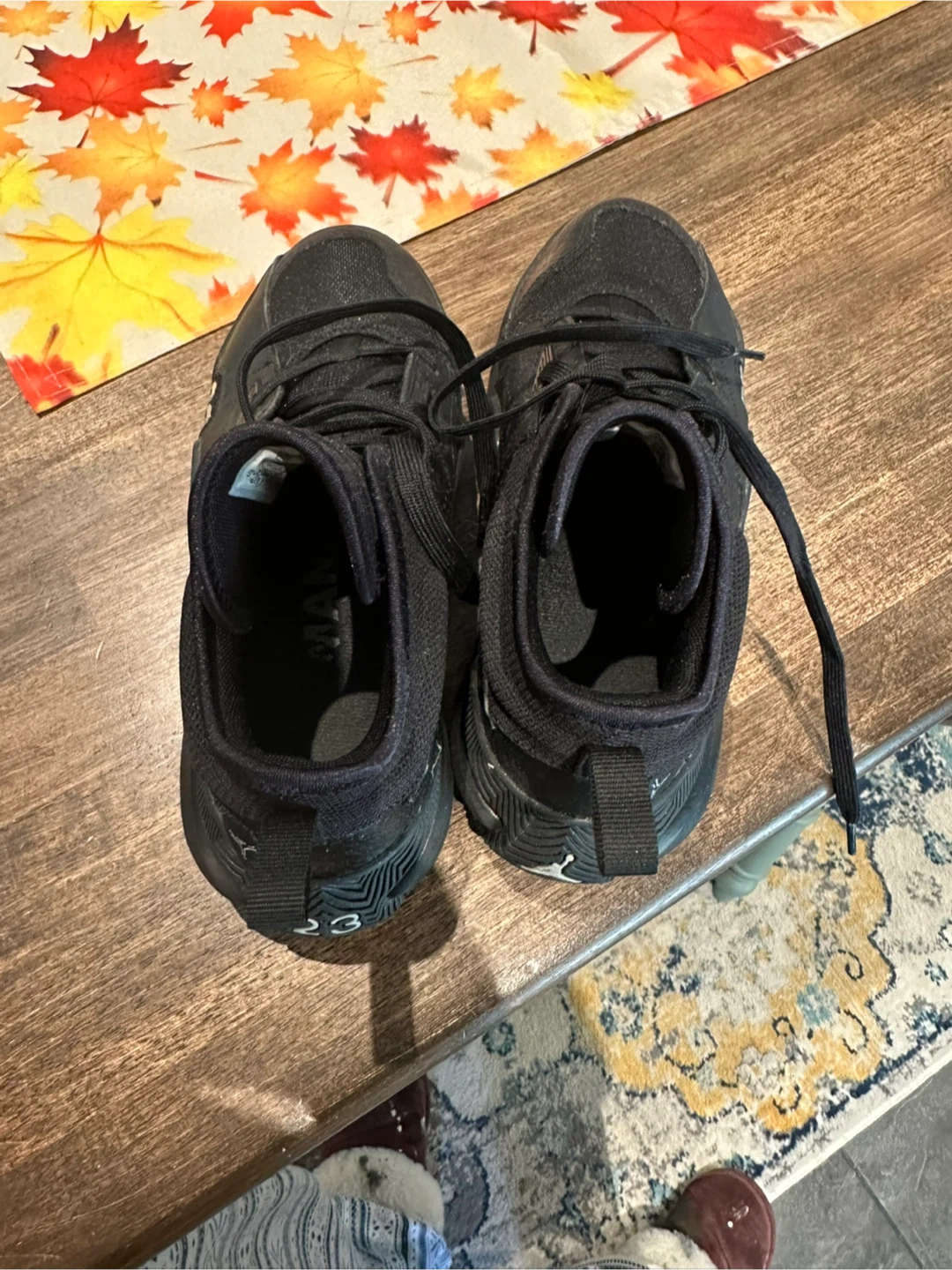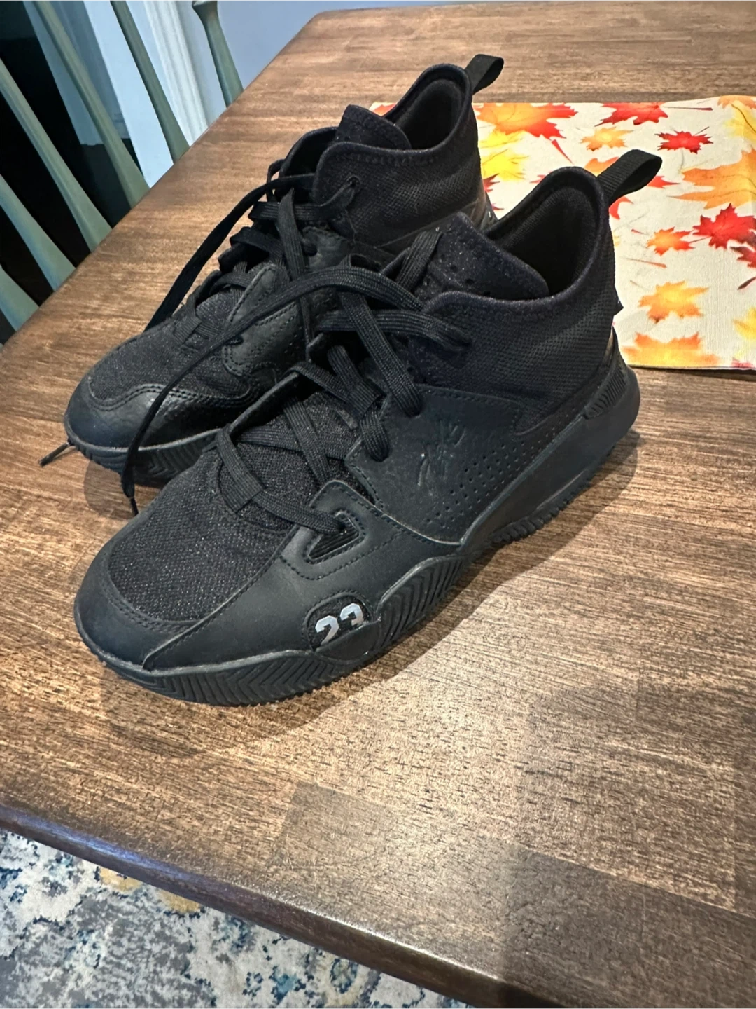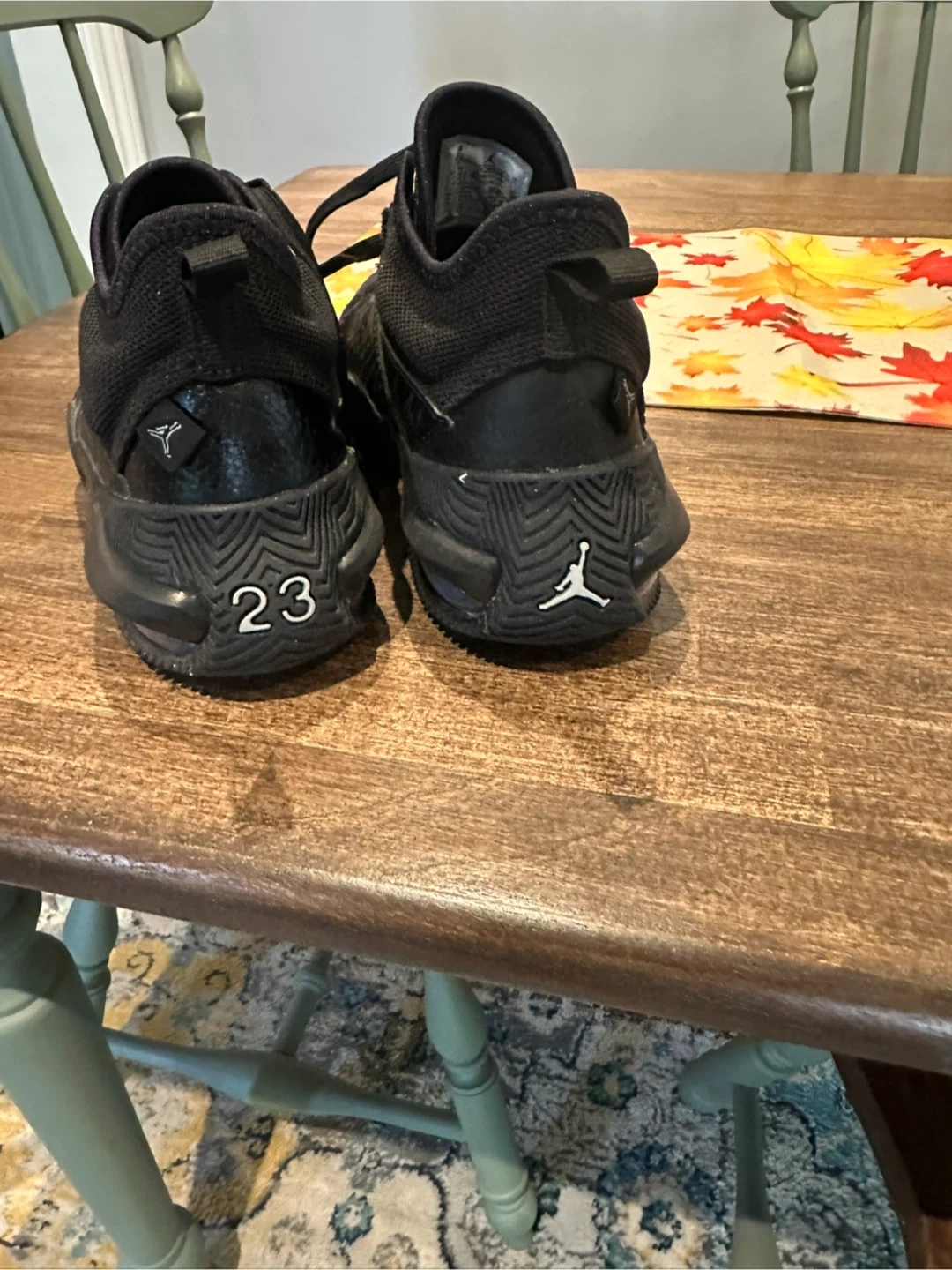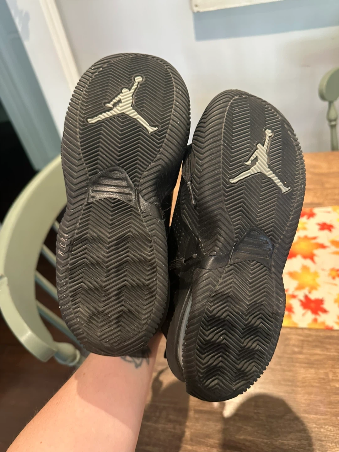 Selling a pair of Jordan sneakers in black! They are in great condition and a size 6.5 (US). Perfect for everyday wear or hitting the court!