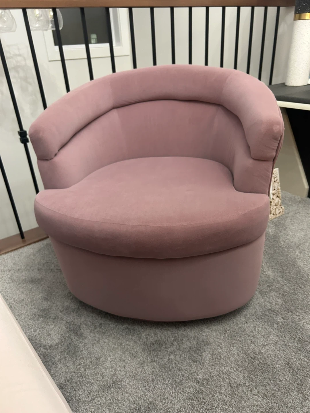 Selling a cute pink accent chair! It's in ok shape and would be perfect for a bedroom or living room. The round design makes it a unique and stylish piece of furniture. Perfect for small spaces. Has a hidden compartment.