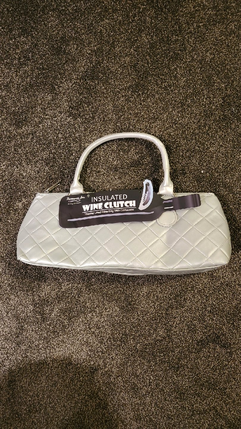 522This insulated wine clutch is perfect for keeping your wine chilled! It's a thermal-lined bag. Great for picnics or a day at the park! Corkscrew is missing