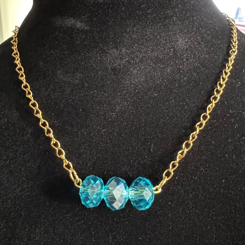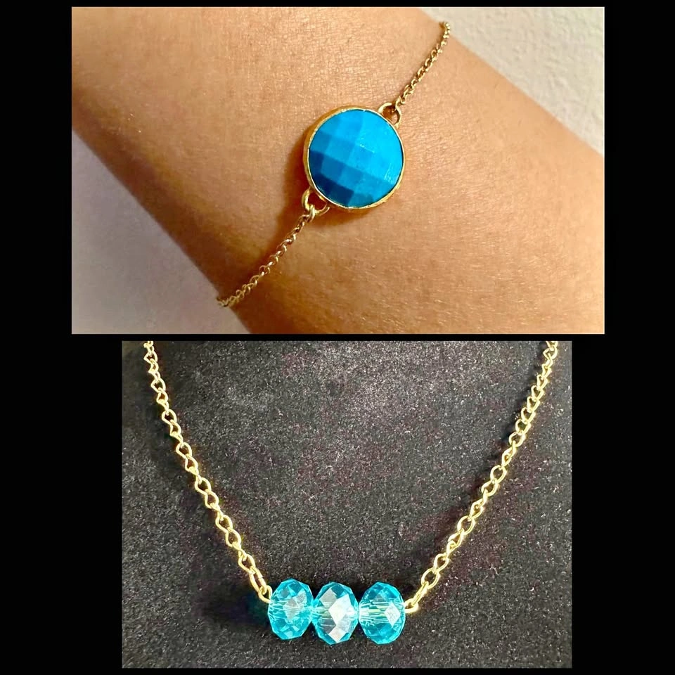 Gold and bright turquoise / aqua blue bundle set - bar pendant necklace with aqua blue faceted crystals and a Stella & Dot turquoise blue magnesite faceted gemstone bracelet. Both pieces are in lovely preowned condition.