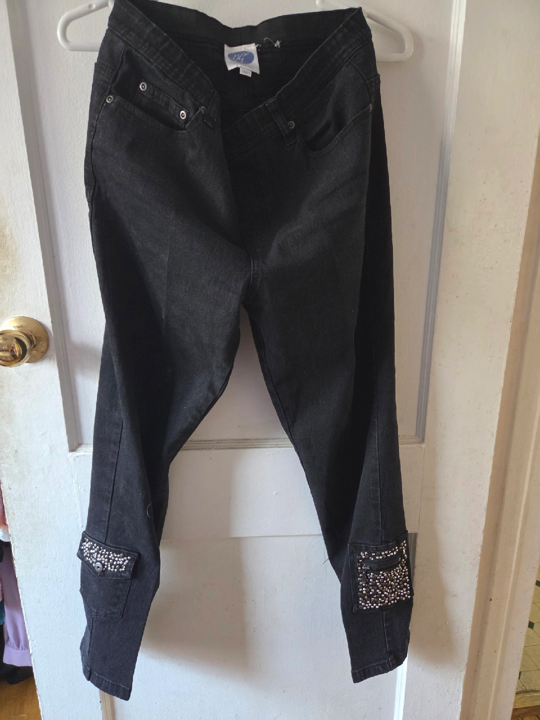 78Selling a pair of d.g. jeans in black, size 10. They have some cute detailing on the bottom of the legs!