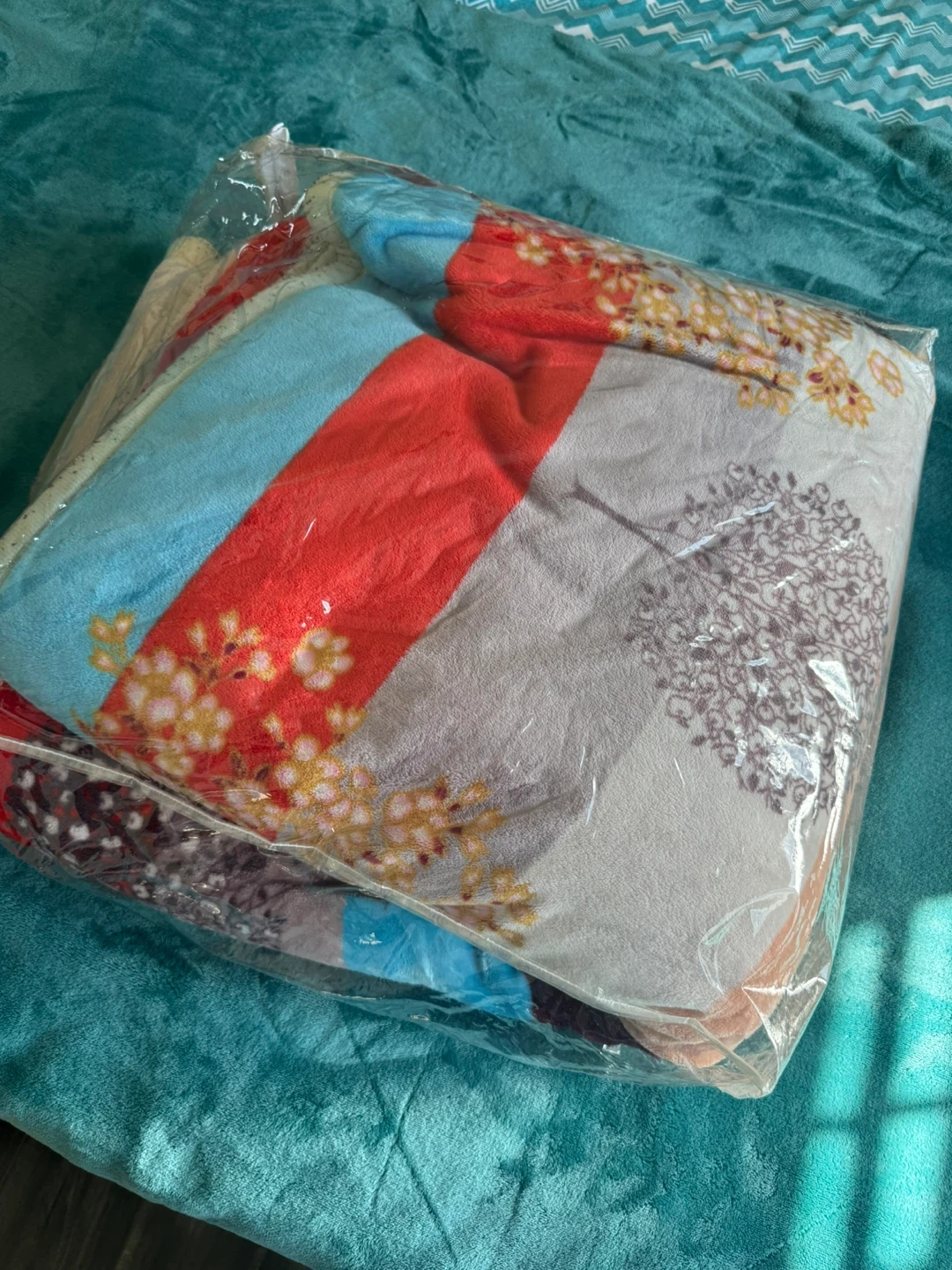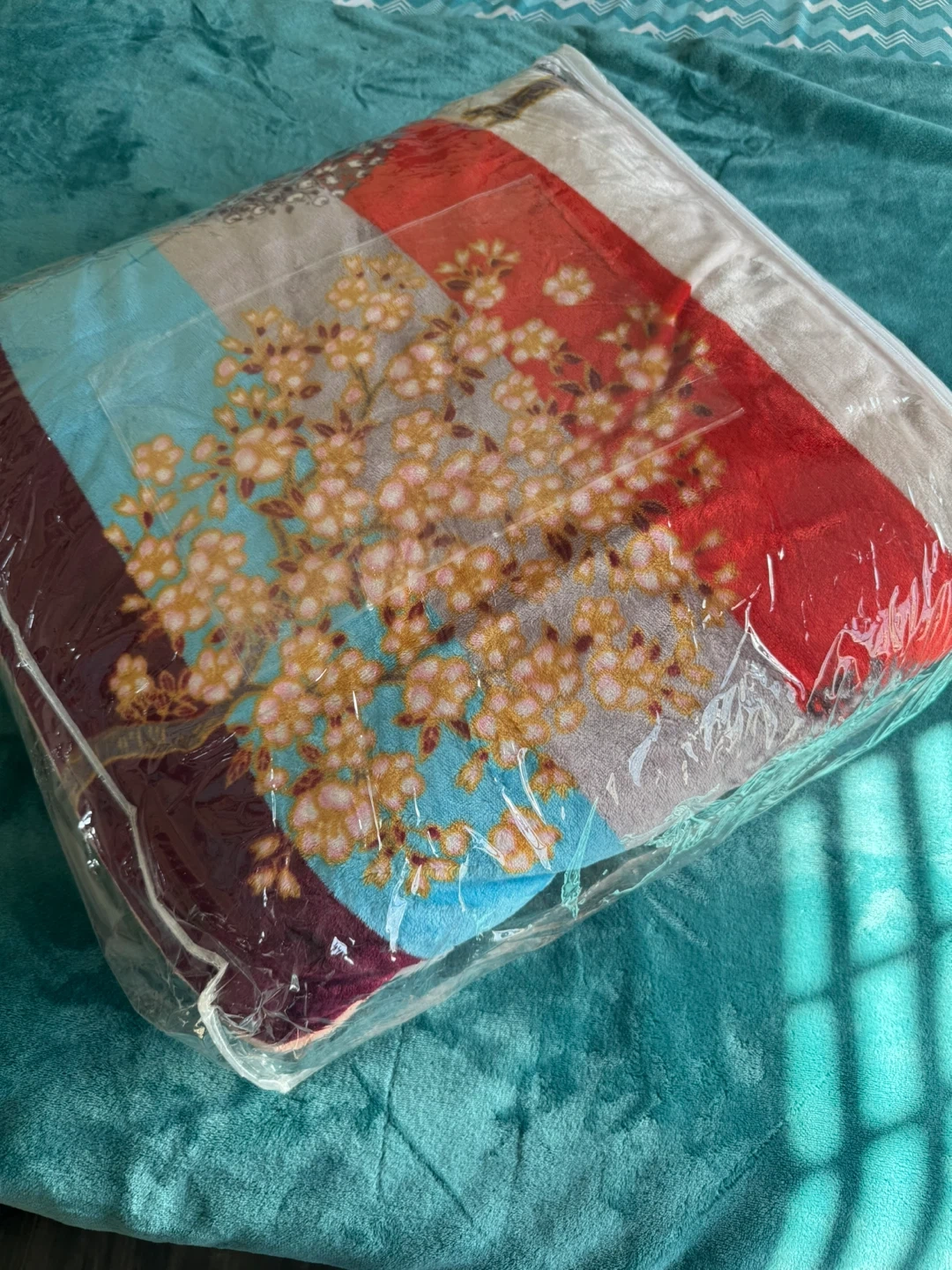 Selling a quilt blanket for winter with a beautiful floral pattern. The quilt features a mix of colours including red, blue, grey, and white. Perfect for adding a touch of elegance to your bedroom! Perfect for keeping warm during winters and it is double ply