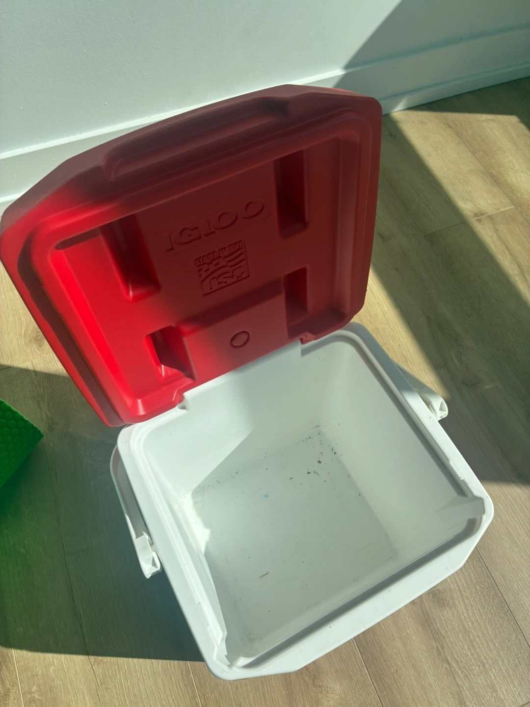 104Selling an Igloo Cool 18 cooler in red and white. It's perfect for keeping your drinks and snacks cold on the go! It is in used condition.