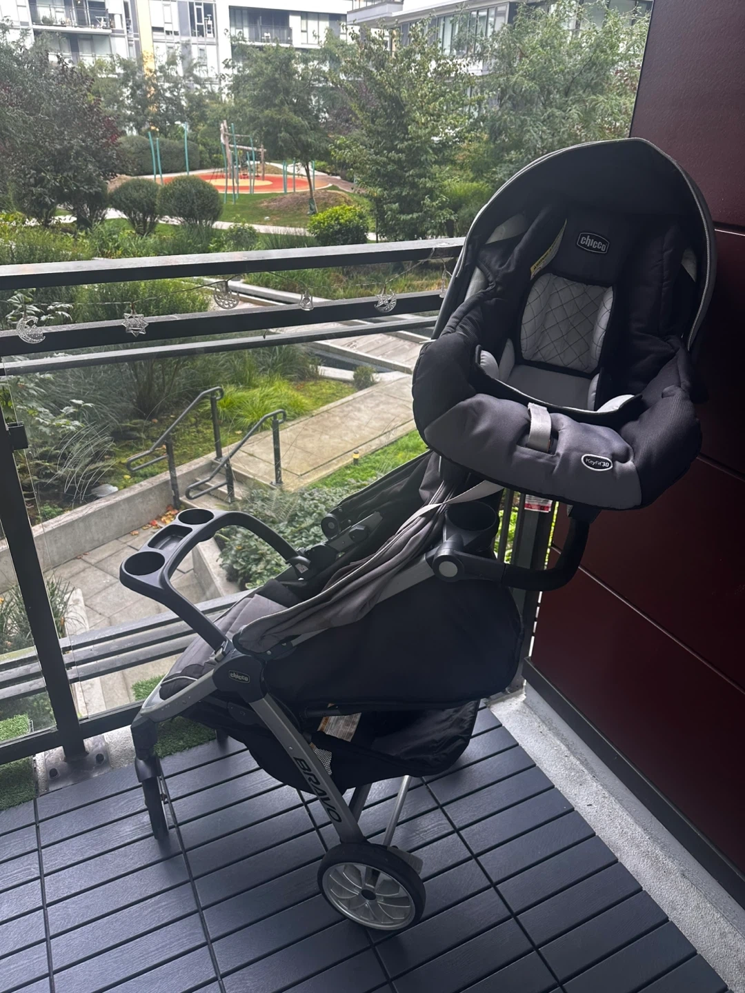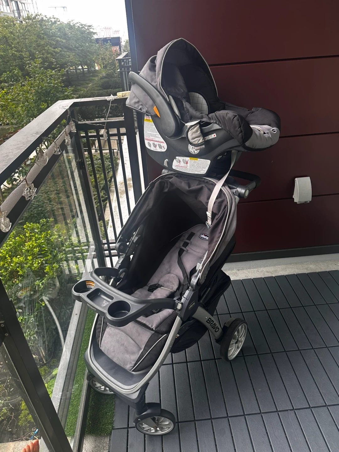 Selling a Chicco Bravo Travel System, which includes both the stroller and the car seat. It's in great condition and ready for a new family. Perfect for getting around town with your little one!