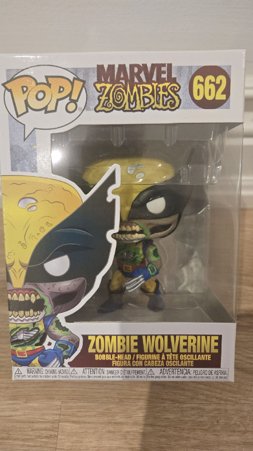 Selling a Funko Pop! from the Marvel Zombies series, featuring Zombie Wolverine! This is number 662 in the series and comes in its original box, in perfect condition. A great addition to any collection!