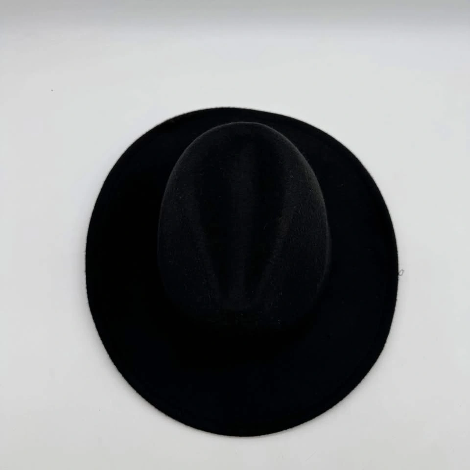Black Felt Cowboy Hat Western Rodeo Braided Band Size 57