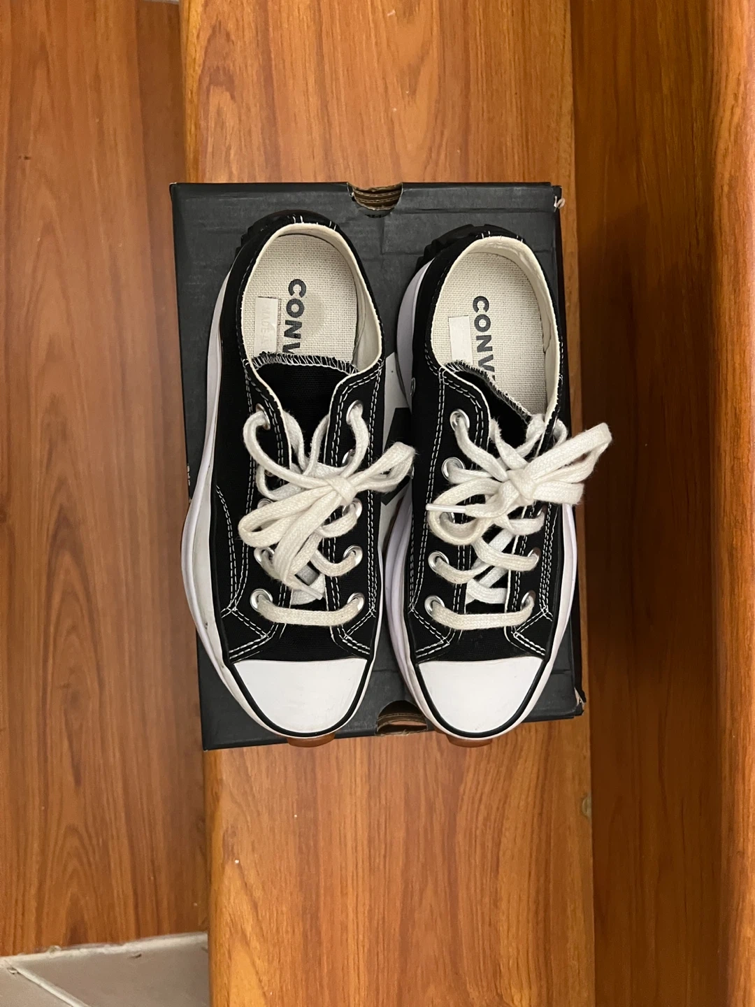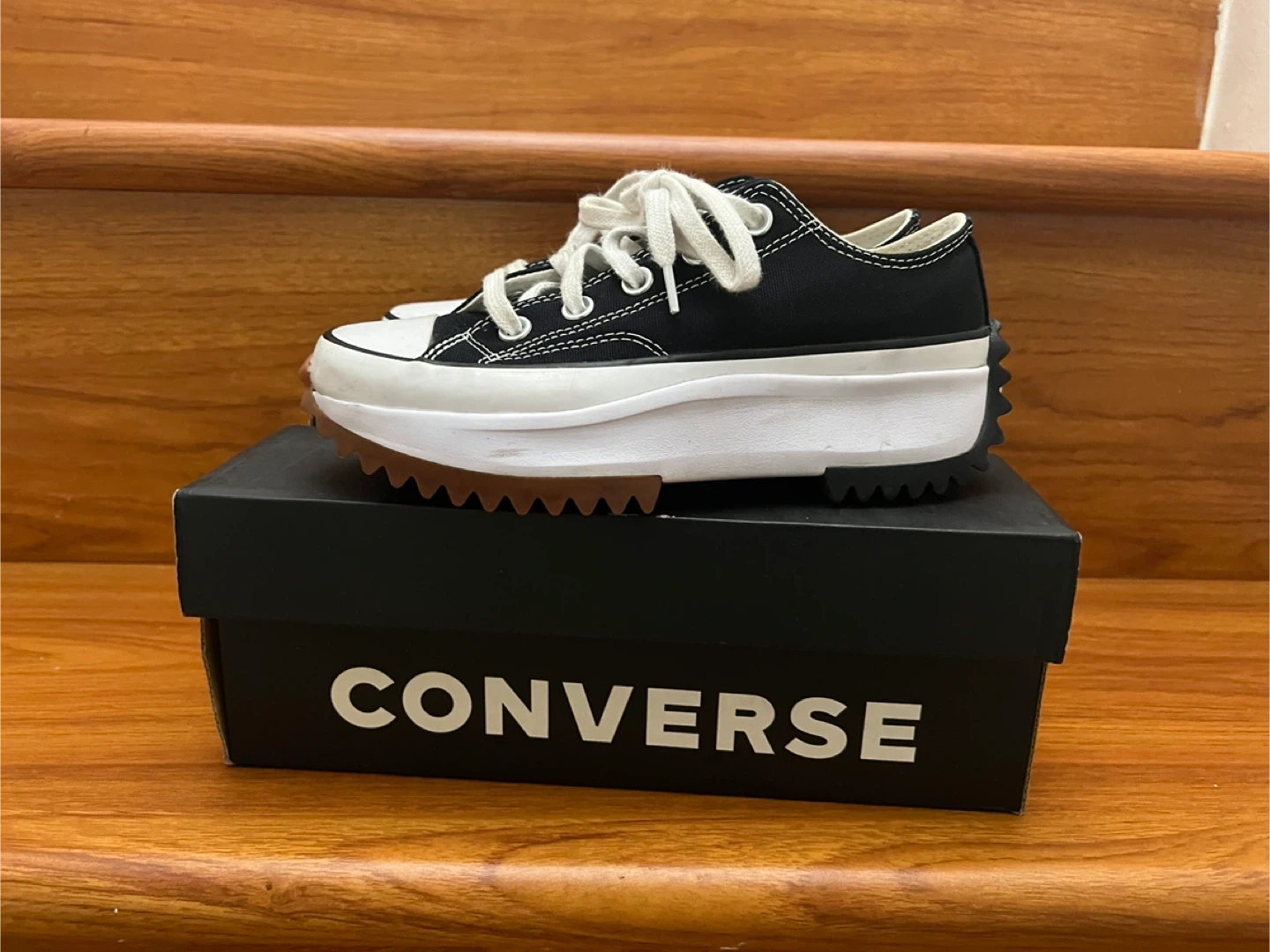Selling a pair of Converse Run Star Hike sneakers in black and white! They're in great shape and come with the original box. These are a women's size 5 (US). Super stylish and comfy!