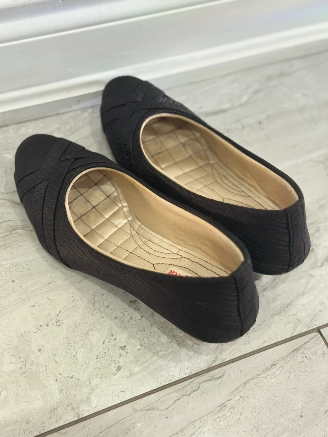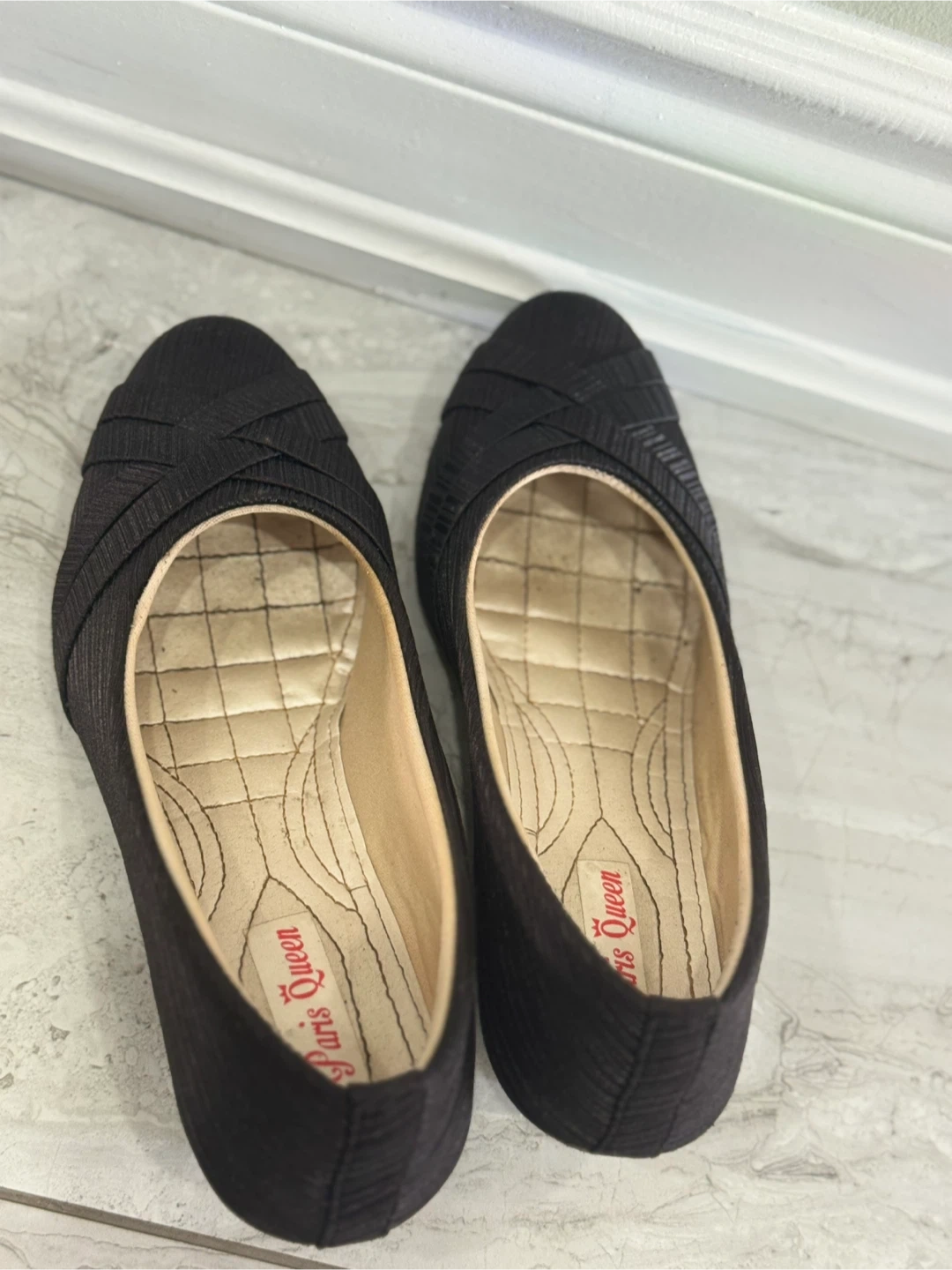 Paris queen black wedge heels. They’re in perfect condition and ready to be worn with any outfit! They are perfect if you want to wear to an interview, party or anywhere else! They are in woman’s size 8