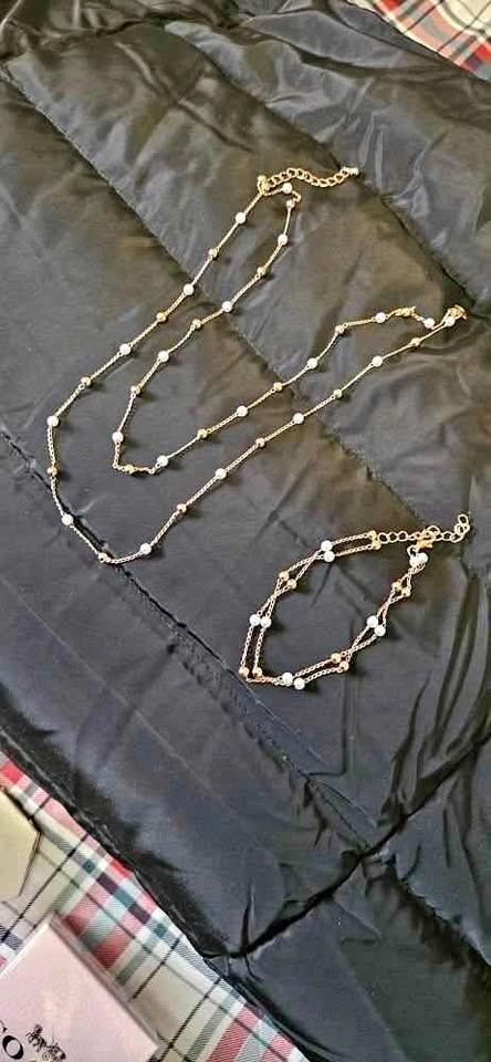 Looks very simple and elegant. One is a necklace. The second piece could be used as either an anklet or a bracelet.