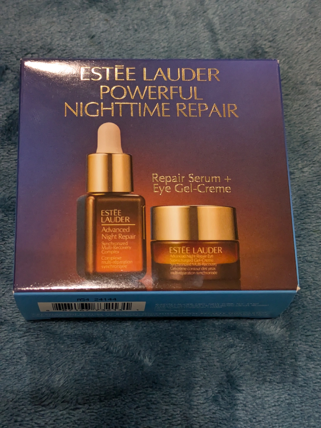 Estee Lauder Powerful Nighttime Repair set, which includes the Repair Serum and Eye Gel-Creme. 7 ml and 5 ml