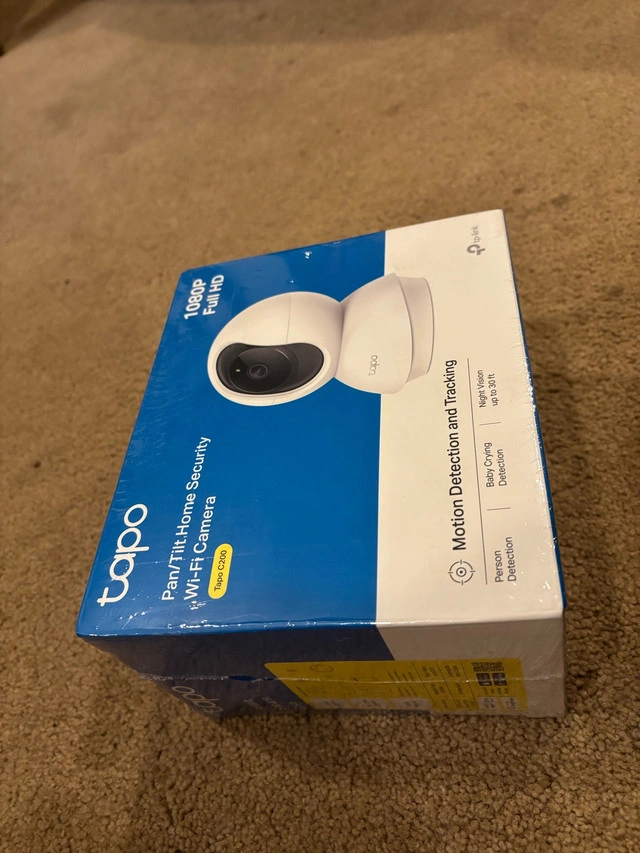 Selling a new in box TP-Link Tapo Smart Pan/Tilt Indoor Security Camera, 360° Motion Tracking, 1080p Full HD WiFi Camera for Pet/Baby, Night Vision, 2-Way Audio, 128 GB Local Storage, Works w/Alexa & Google (Tapo C200) (B04)