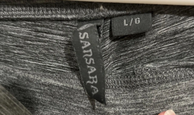 These used Sansara brand joggers in size large are perfect for lounging or light workouts. They're in good condition, showing minimal signs of wear, and offer a comfortable fit with a drawstring waist.
