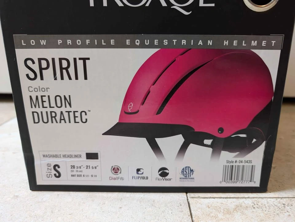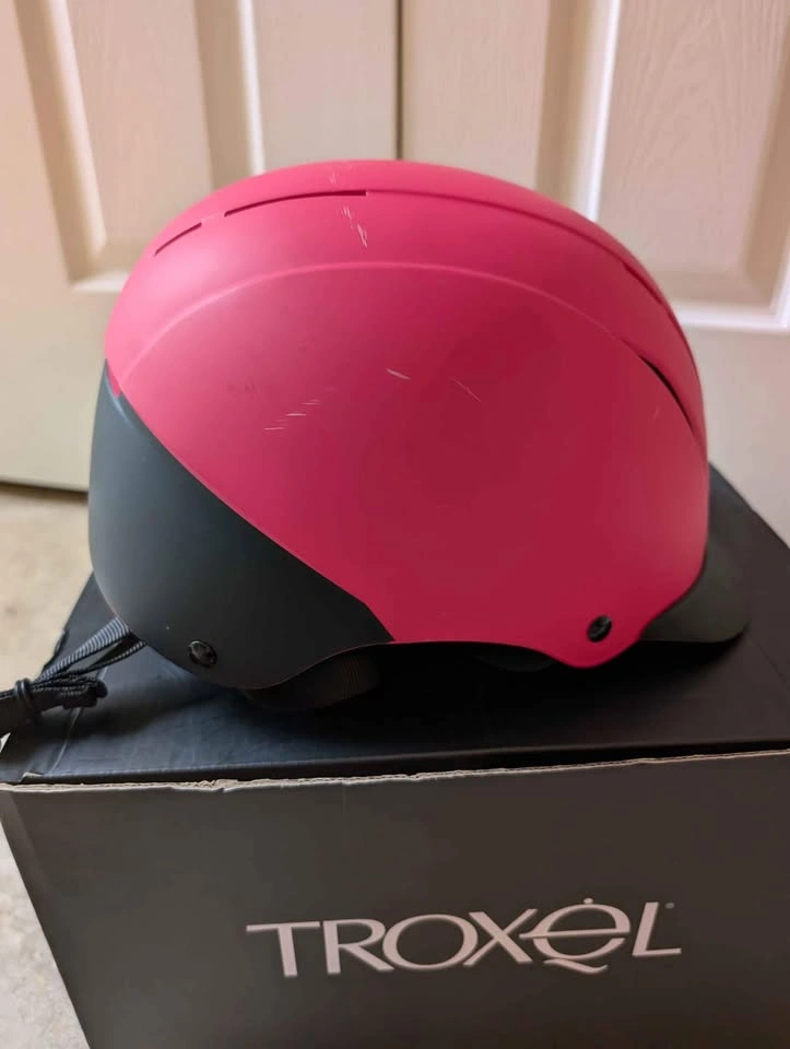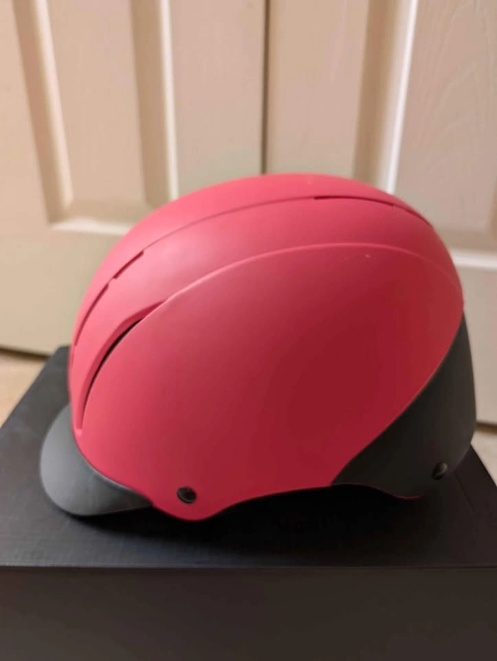 I bought it from Green Hawk equestrian horse back riding store in Mississauga a year ago (for summer camp) and this year it is now too small for my daughter, used for 2 weeks in camp. This riding helmet has a few scratches on the back and top but in great condition !!! Helmet is still available if this post is still up. Britannia and Mavis in Mississauga.