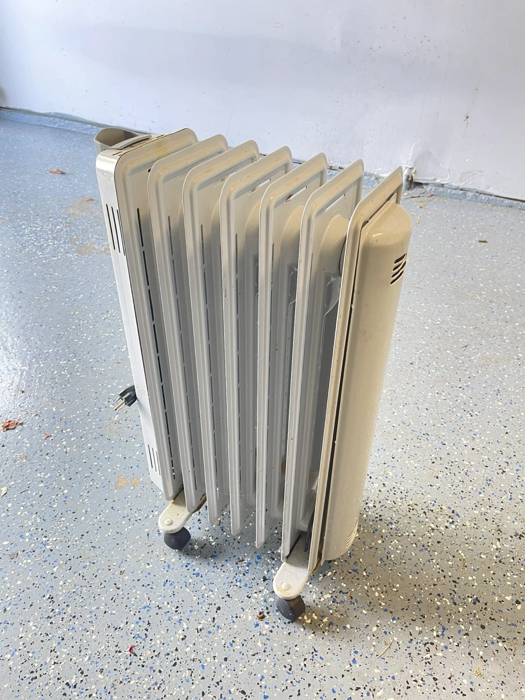 Selling a Honeywell oil filled radiator heater, model HZ-680C. This heater is perfect for keeping a room warm and cozy during the colder months. It's in good working condition and ready to use. It has multiple heat settings for personalized comfort. It also has caution labels to ensure safe operation