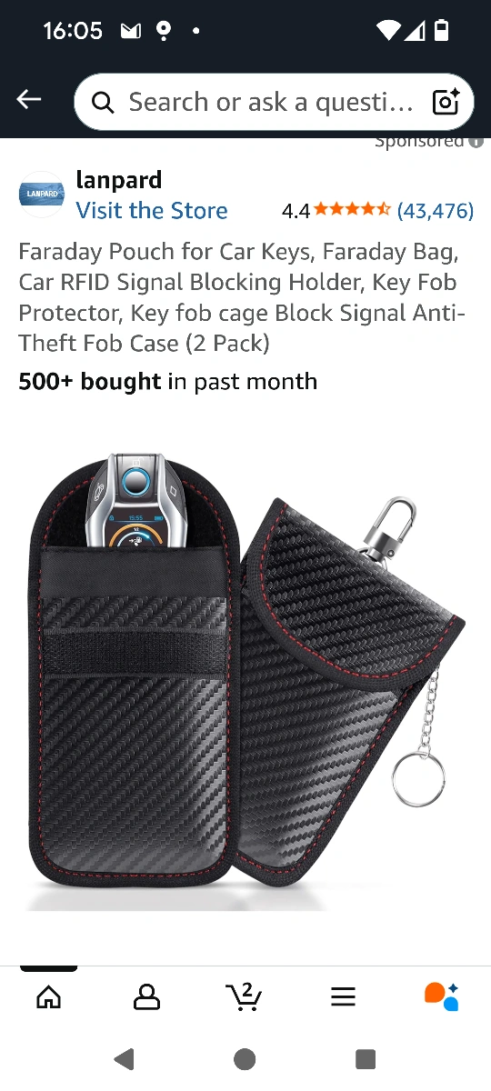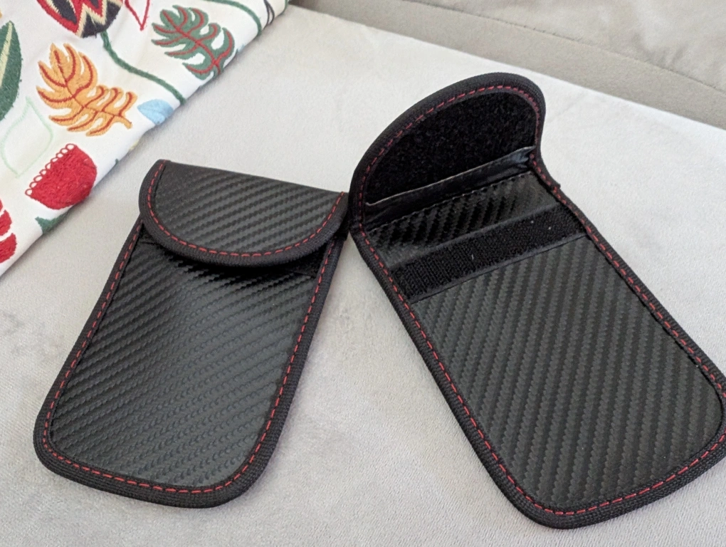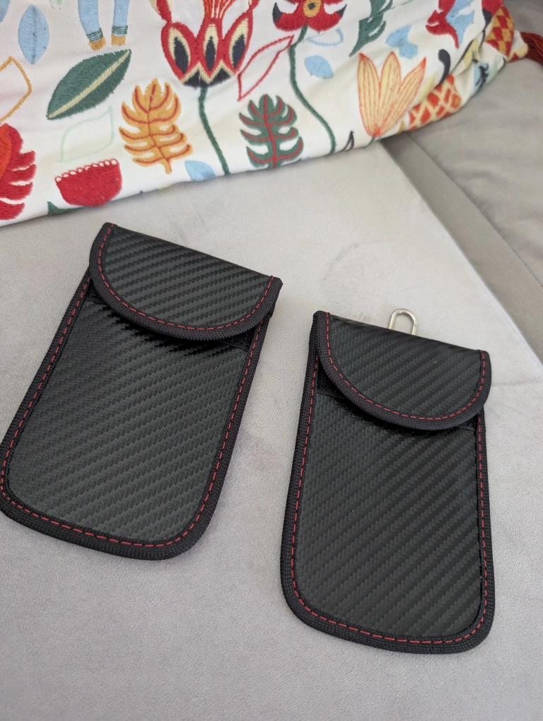 Selling a pair of Faraday pouches for car keys. These are designed to block RFID signals, protecting your key fobs from theft. They've never been used.