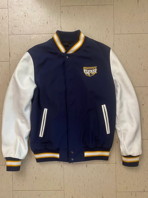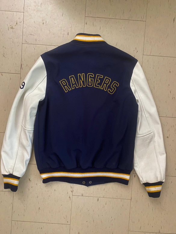 36Selling a Rangers varsity jacket in great condition! It's a stylish navy blue and white. High quality varsity jackets Size-m Serious buyers only Location: corvette ave