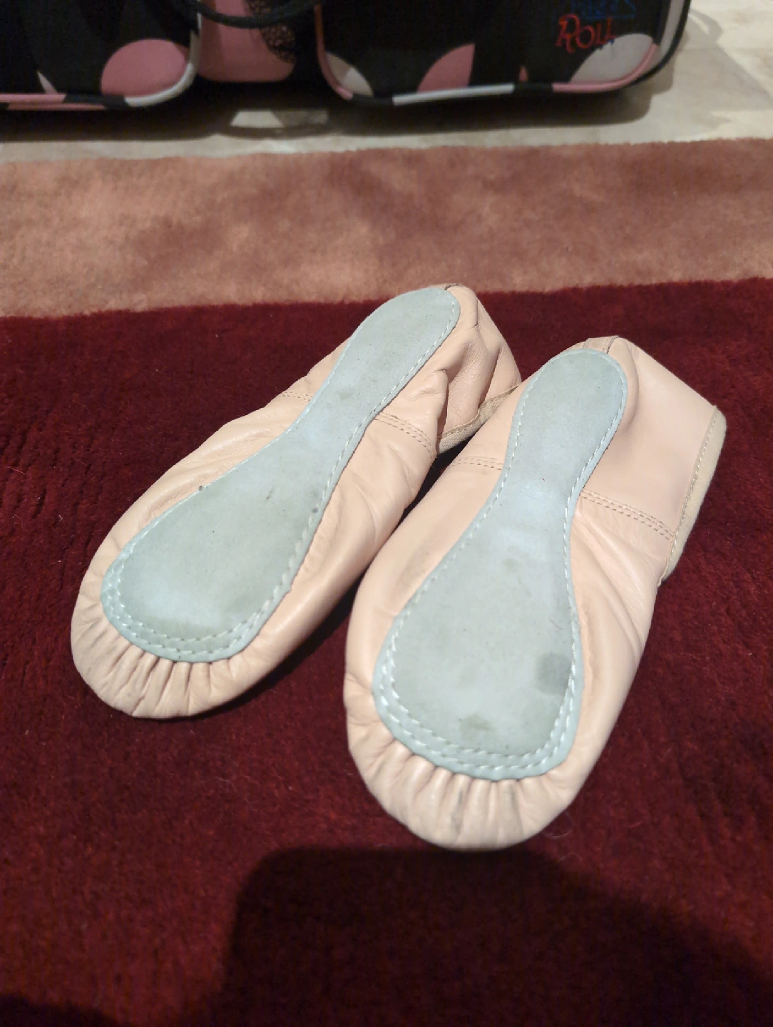 Selling a pair of Balera B40 full-sole ballet shoes in size 7.5AM. The colour is Ballet Pin. Comes with the original box! worn for one season of dance! need gone ASAP!