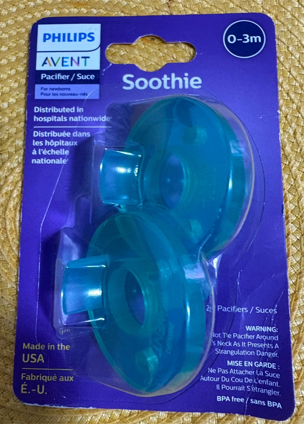 Giving away a brand new Philips Avent Soothie pacifier, designed for newborns aged 0-3 months. These pacifiers are distributed in hospitals nationwide and are BPA-free. Comes with two pacifiers in the pack, still sealed in original packaging!