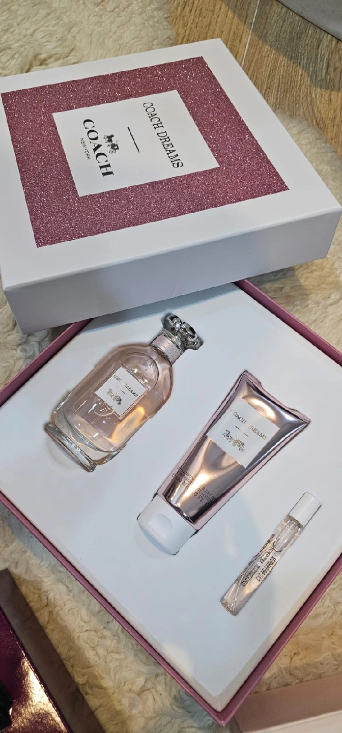 Selling a Coach Dreams gift set that includes a perfume bottle, lotion, and rollerball. The set comes in its original box, making it a lovely gift or a treat for yourself! The lotion is 100ml / 3 fl oz