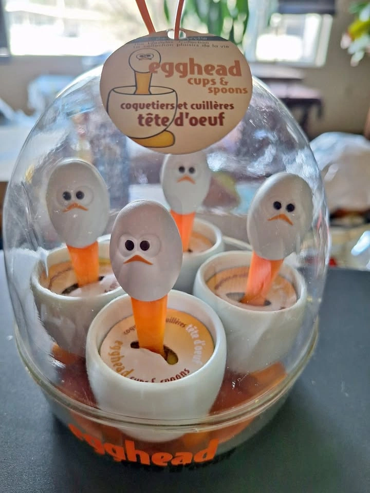 1. Egghead Cups and Spoons set of four - 4" high - $20