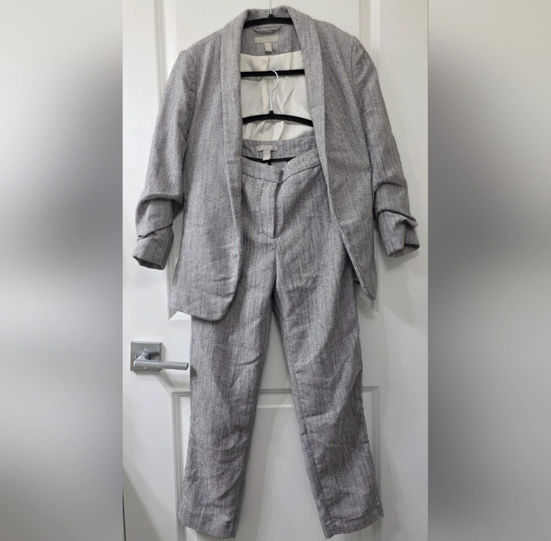 ⭕️ Great for interview and office outfit ⭕️ Pants: 1 usable pocket on each side. No pockets at the back ⭕️ Blazer has mildly padded shoulders ⭕️ No closure for blazer ⭕️ Size: US 2 ⭕️ Outfit best for: - Office - Business Meetings - Interviews ⭕️ Snag on the pants (see last photo for reference) 📍 Meet up in Kingsway Mall or at Purolator store in 11220 104 Ave. NW Edmonton. Thanks for dropping by! 👍