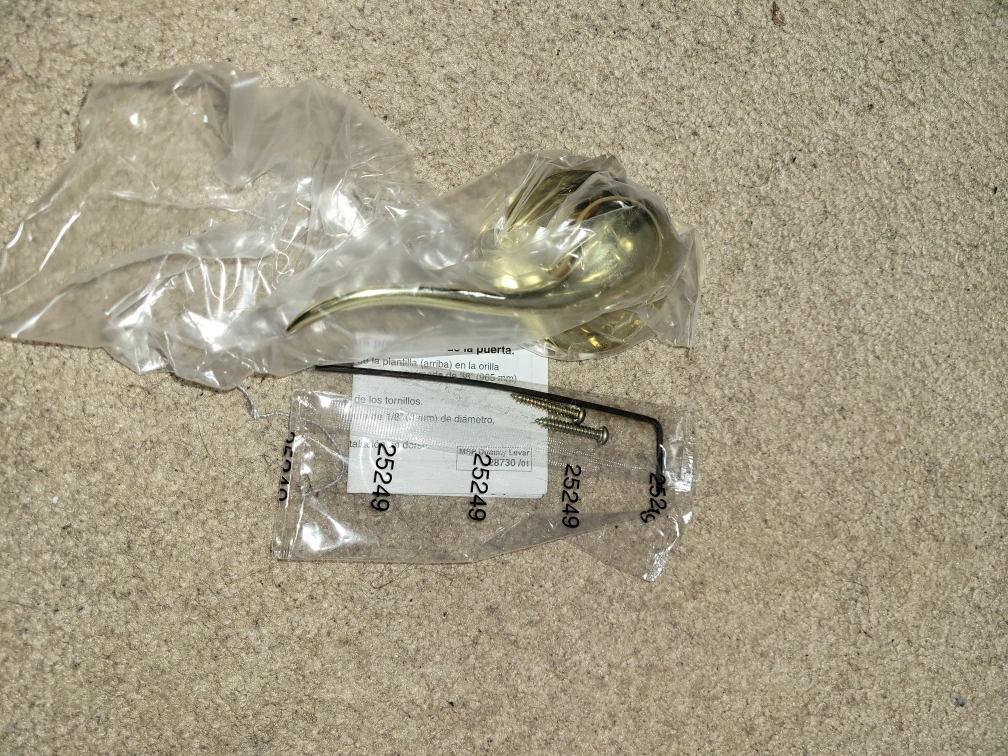 Selling a new Kwikset door lever set. It comes in the original box with all the components included.