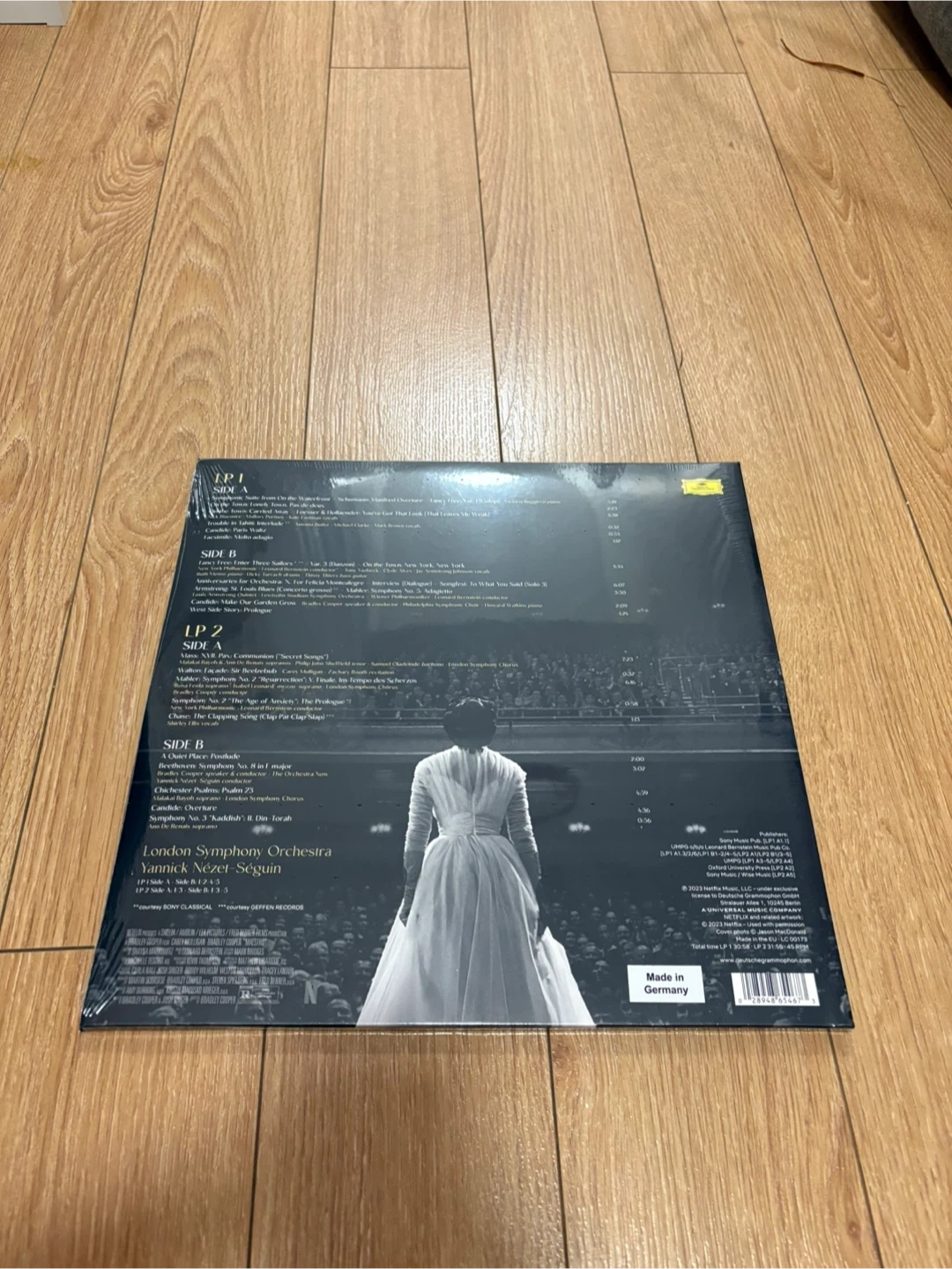 Selling a vinyl record titled "Music by Leonard Bernstein". It features Yannick Nézet-Séguin and the London Symphony Orchestra. It's the original soundtrack and comes in its original packaging. A great addition to any vinyl collection!