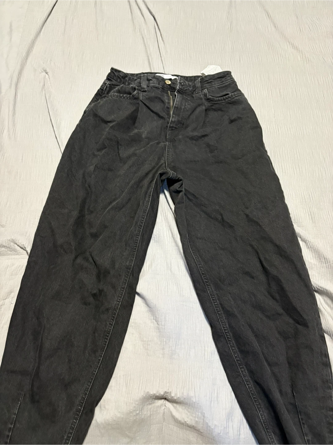 Selling a pair of Zara denim jeans in size 6. They are black and in good condition. The tag shows they are made in Turkey.