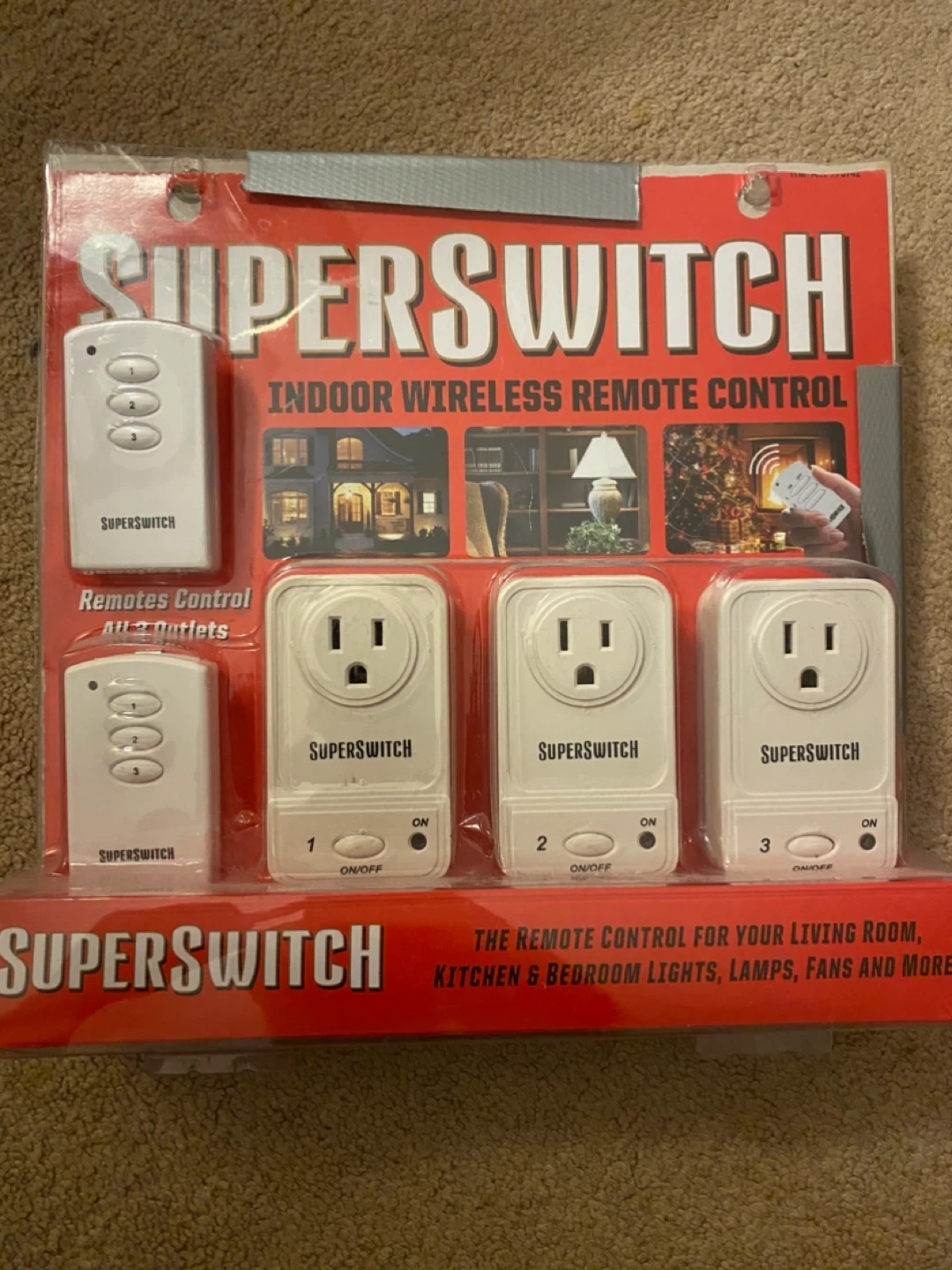 I'm selling a brand new SuperSwitch Indoor Wireless Remote Control set! It includes 2 hand-held remote controls and 3 wall receivers.