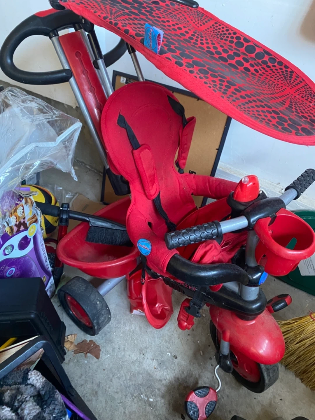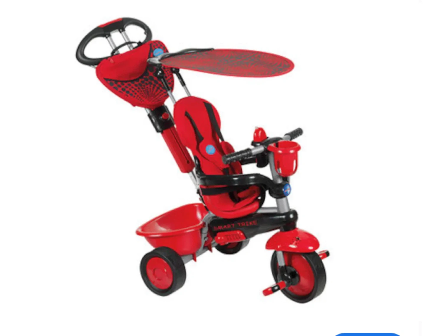 88Selling a red Smart Trike 4-in-1 tricycle! It's in good condition and ready for a new little rider. This trike grows with your child, offering different stages of use as they develop. It features a parent handle for steering and a sun canopy for sunny days. Perfect for outdoor adventures!