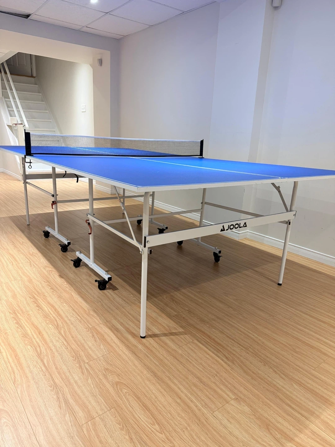 Looking to sell my JOOLA ping pong table! It's in great shape and ready for some fun games. It's a vibrant blue colour, perfect for any rec room or basement. It also has wheels for easy moving!