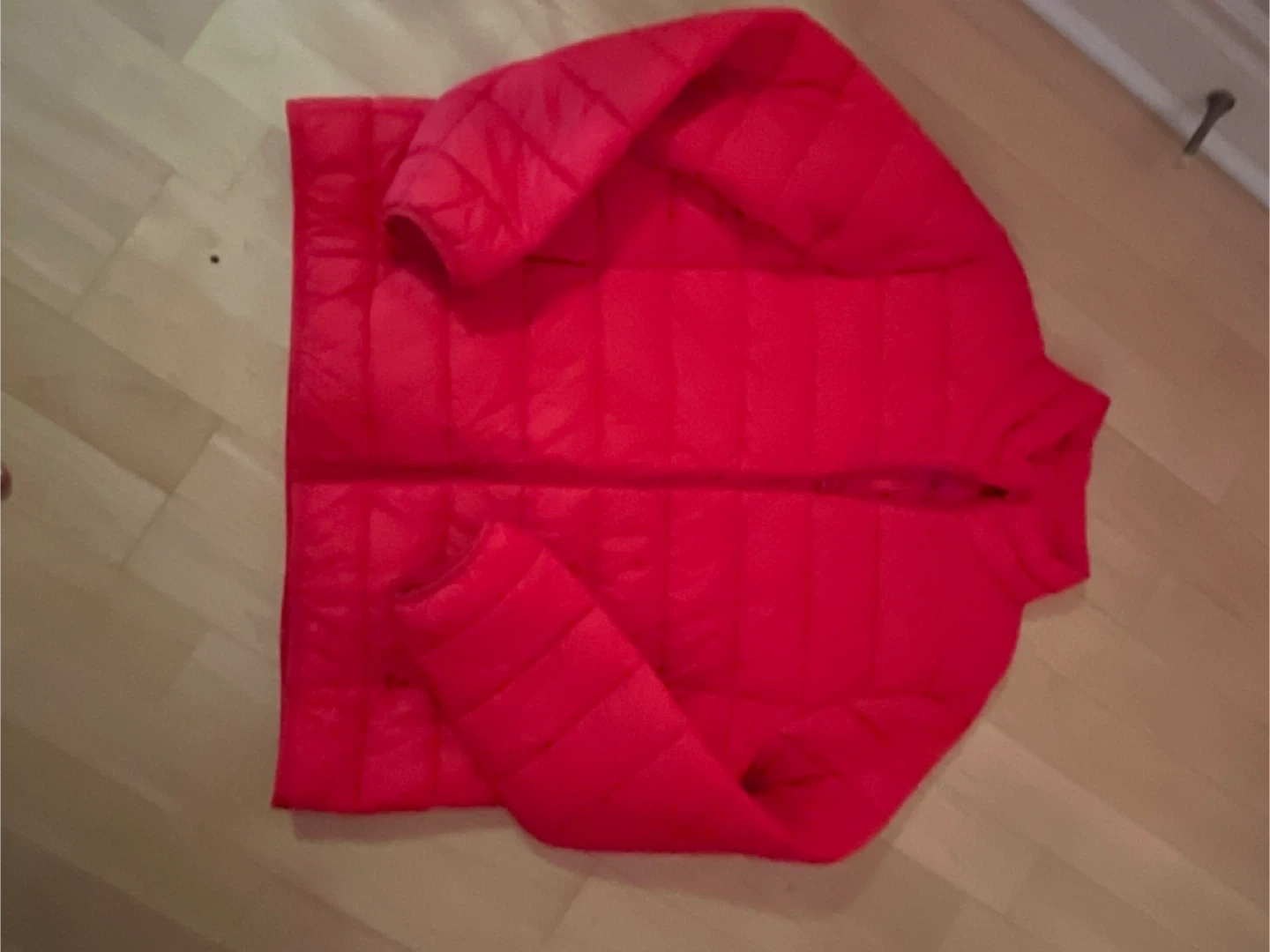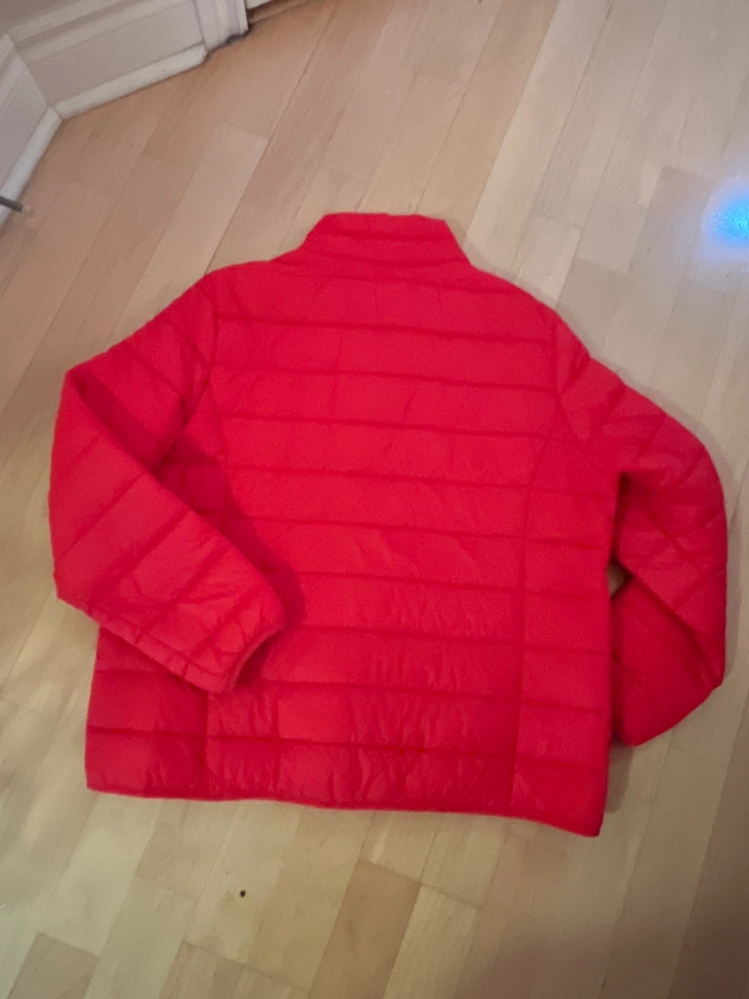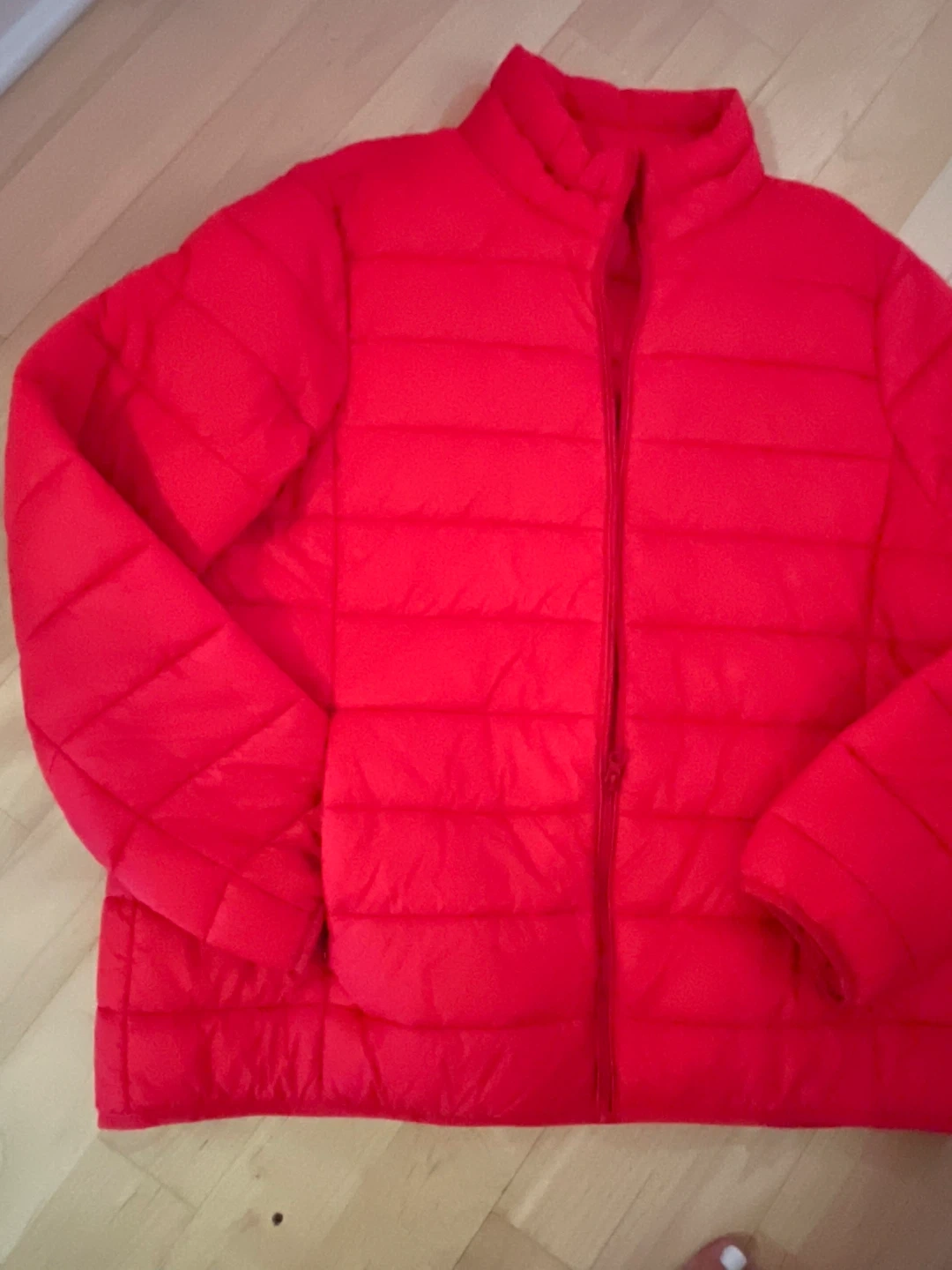 A bright red puffer jacket from Joe Fresh! It's in almost new condition and ready to keep you warm. Perfect for those chilly Canadian days. Front zipper closure/two front zip up pockets.