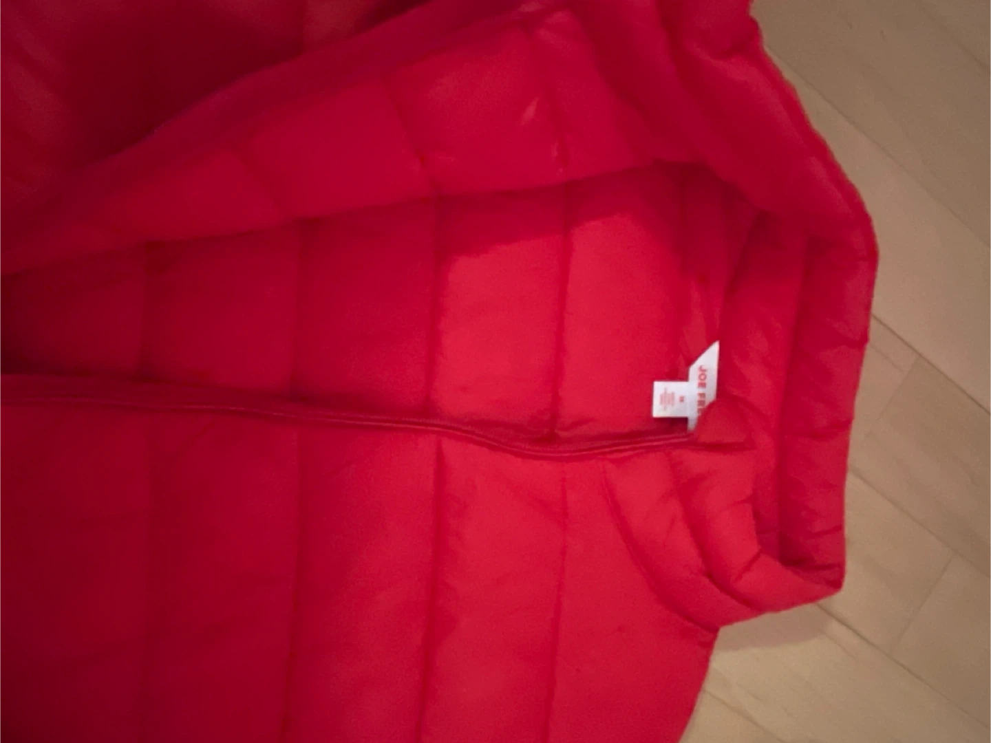 A bright red puffer jacket from Joe Fresh! It's in almost new condition and ready to keep you warm. Perfect for those chilly Canadian days. Front zipper closure/two front zip up pockets.
