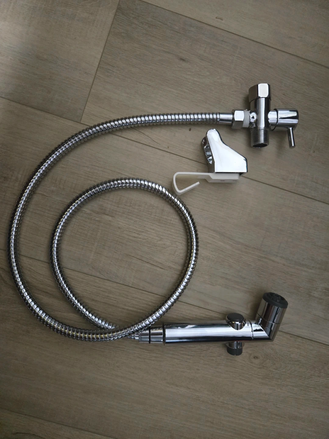 New bidet sprayer. Chrome finish, a flexible hose for easy maneuvering, and all the necessary components for a straightforward installation.