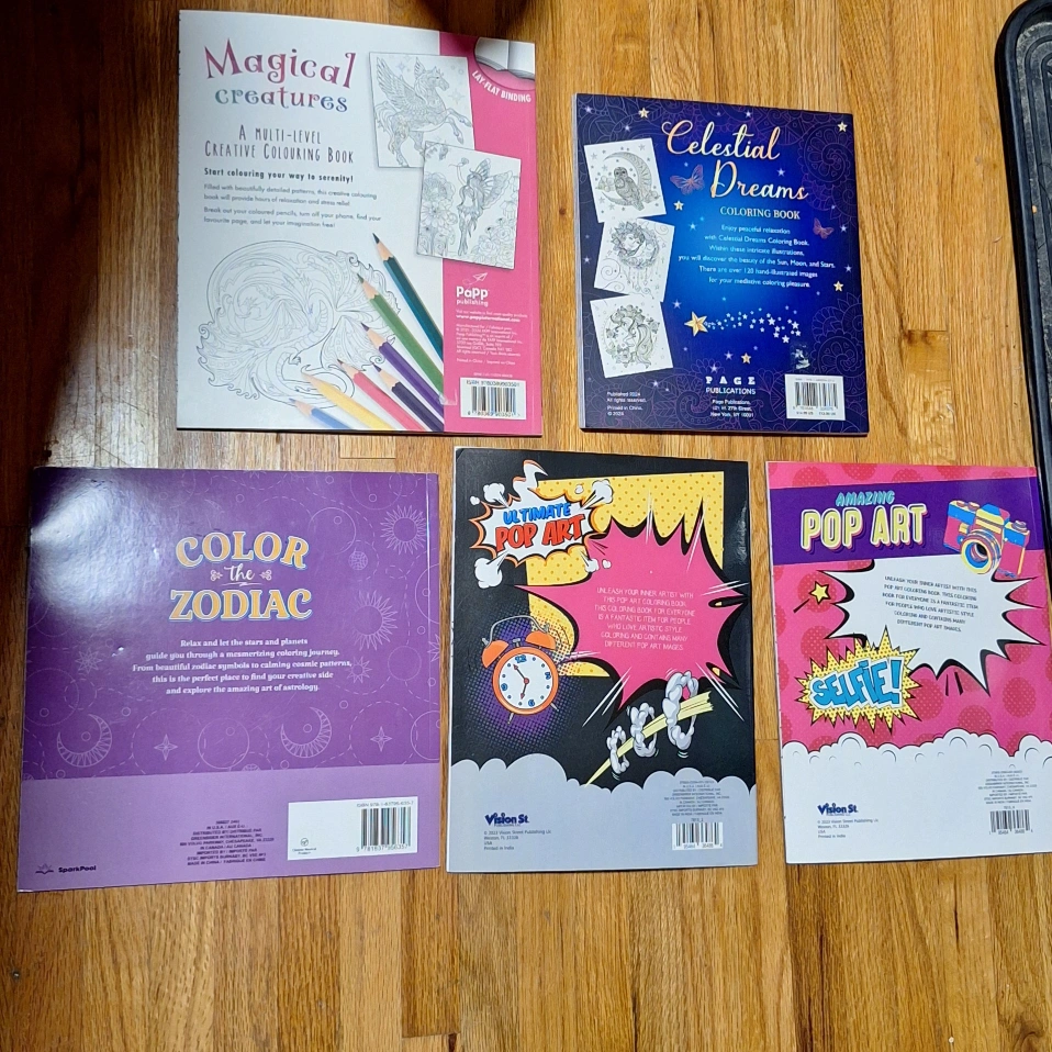 37$2 Each or $8 for the whole collection...Selling a set of adult colouring books! Includes titles like Magical Creatures, Celestial Dreams, Color the Zodiac, Ultimate Pop Art, and Amazing Pop Art. Great for relaxing and getting creative