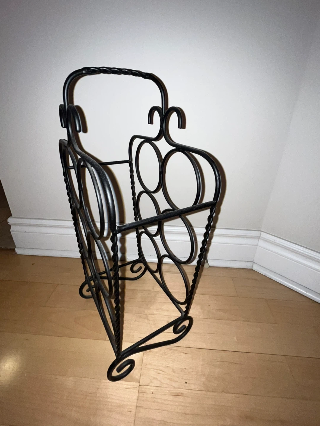 Selling a black metal wine rack. It's in great condition and ready to hold your favourite bottles! It's a stylish way to store your wine…21”Hx12”W