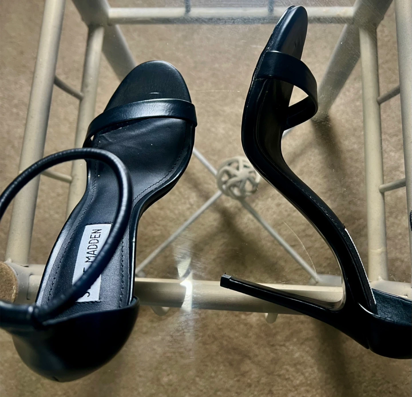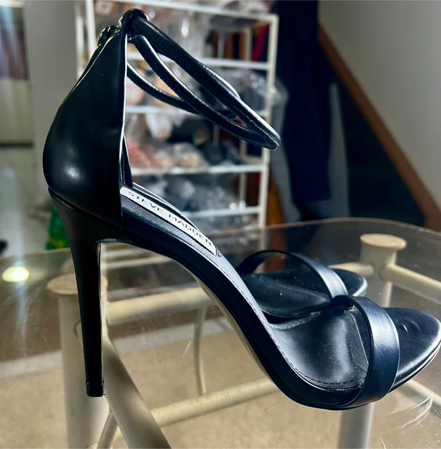 67Selling a pair of Steve Madden black heels in size 7.5M! These are in great condition and perfect for a night out or special occasion. They feature a classic stiletto heel and a sleek ankle strap. A stylish addition to any wardrobe!