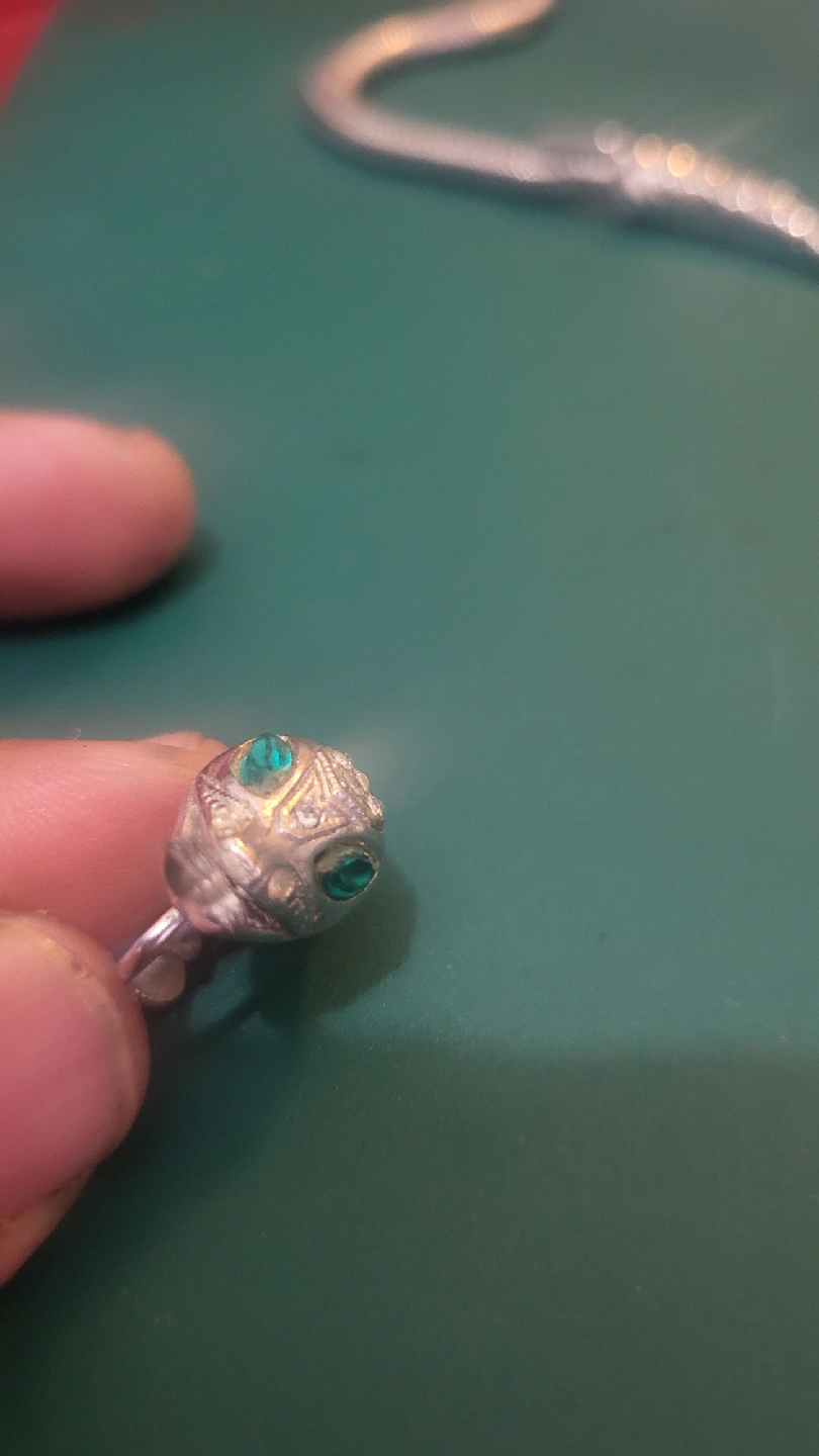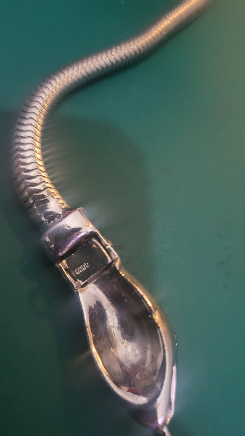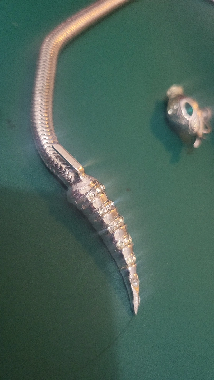 20Selling a vintage snake jewellery set! It includes a necklace, bracelet, and a pair of earrings. The set is silver. A unique and eye-catching set to add to your collection see picture 2 green stone missing.